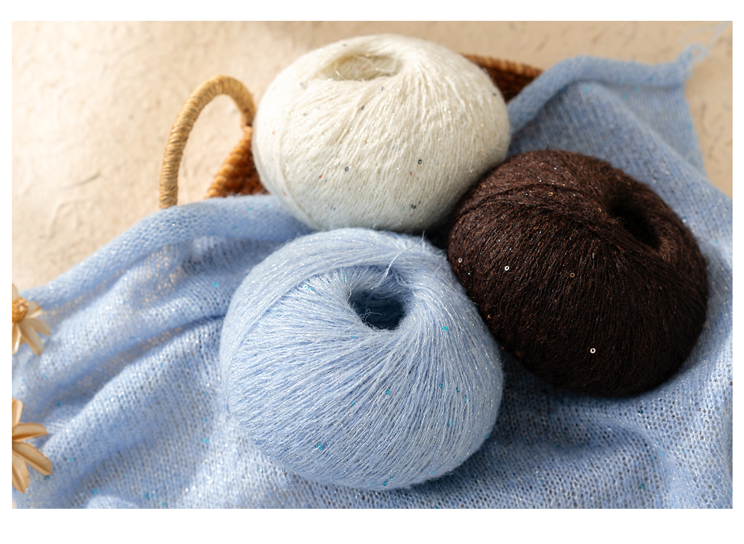 苏苏姐家幻羽珠片马海毛线团细手工diy编织围巾披肩围脖宝宝毛衣