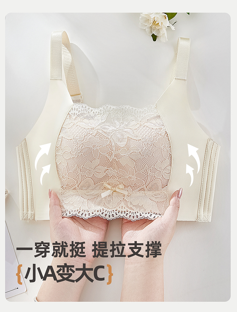 雅黛俪女士文胸小胸聚拢显大上薄下厚杯性感蕾丝抹胸式内衣胸罩