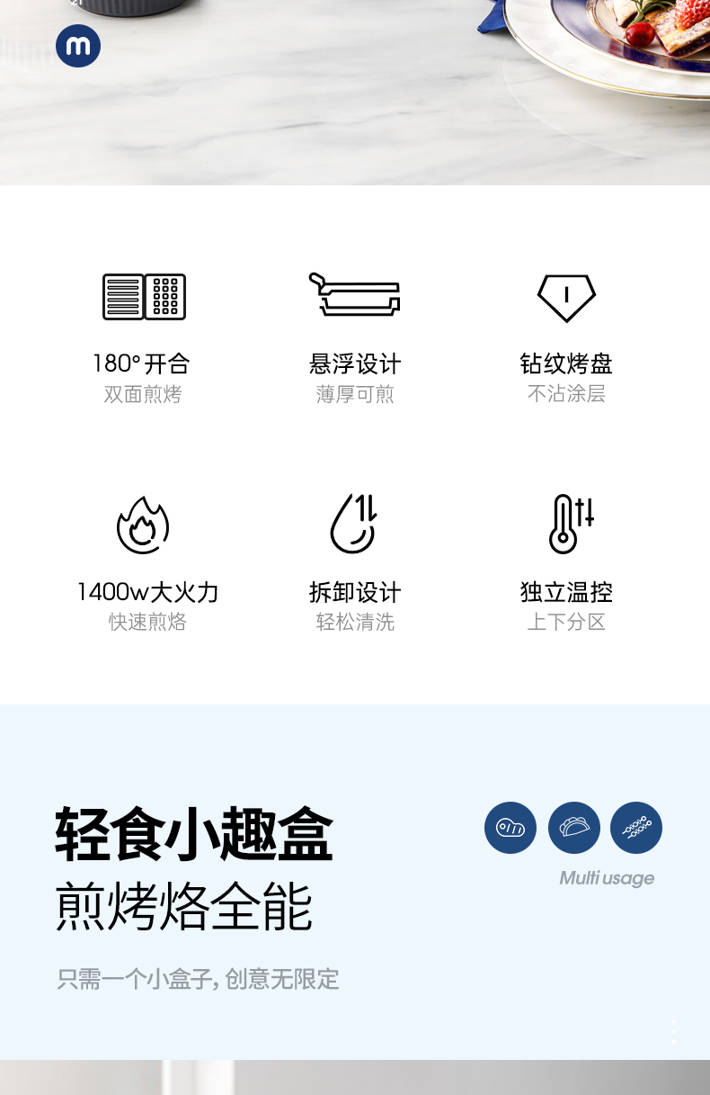 【morphyrichards摩飞】电饼铛双面加热悬浮式设计烙饼机 MR8600