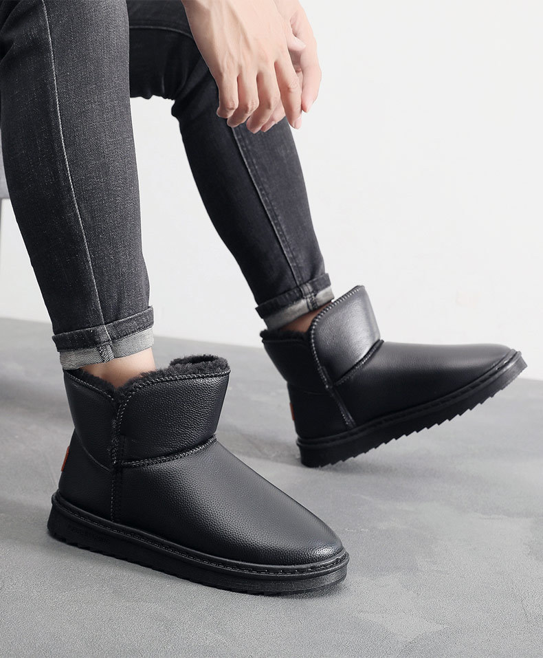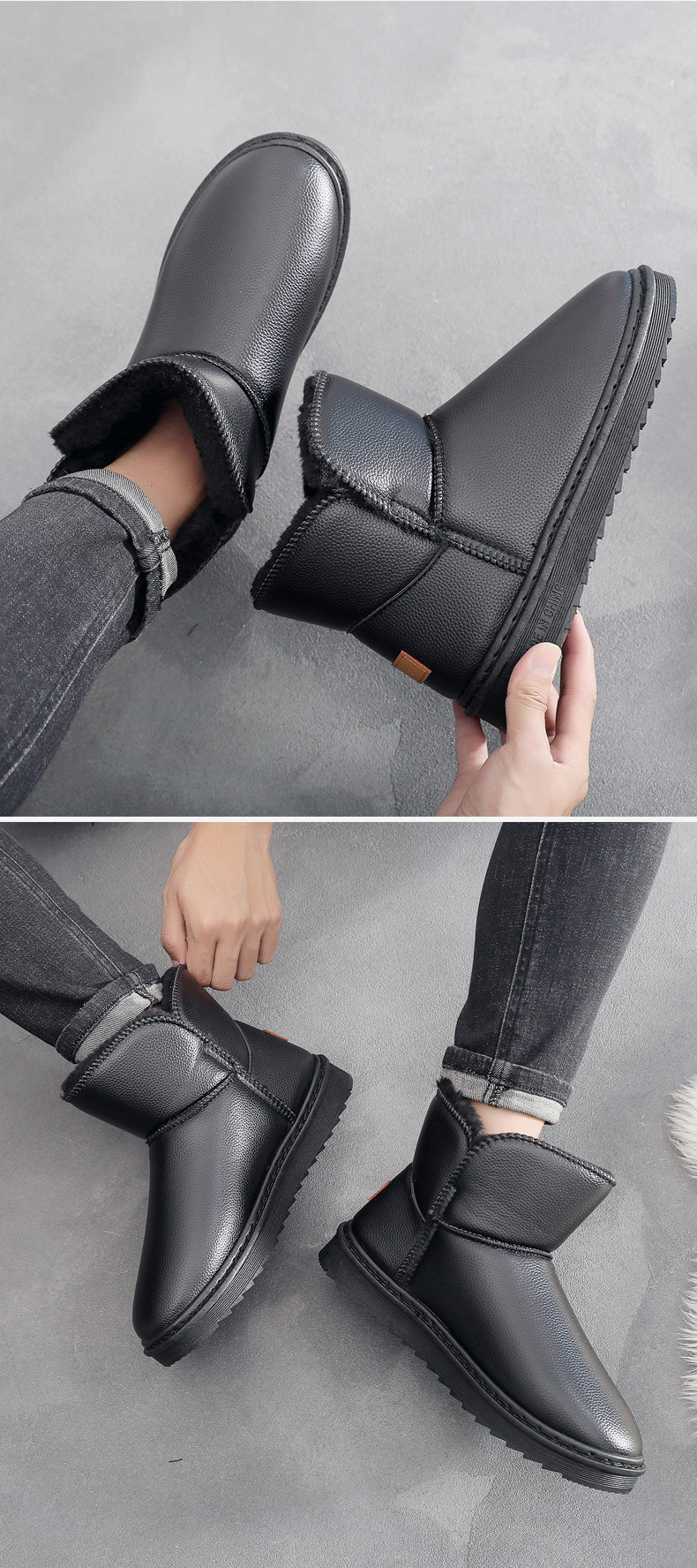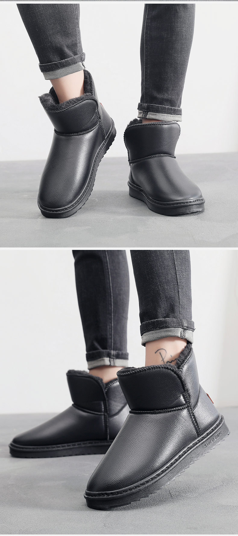 【超暖❗️皮面防水雪地靴】深度保暖时尚百搭,防泼水PU材质,保暖舒适绒毛,简约廓形设计,男士棉鞋防滑保暖加厚加绒厚底面包鞋舒适棉靴QQ