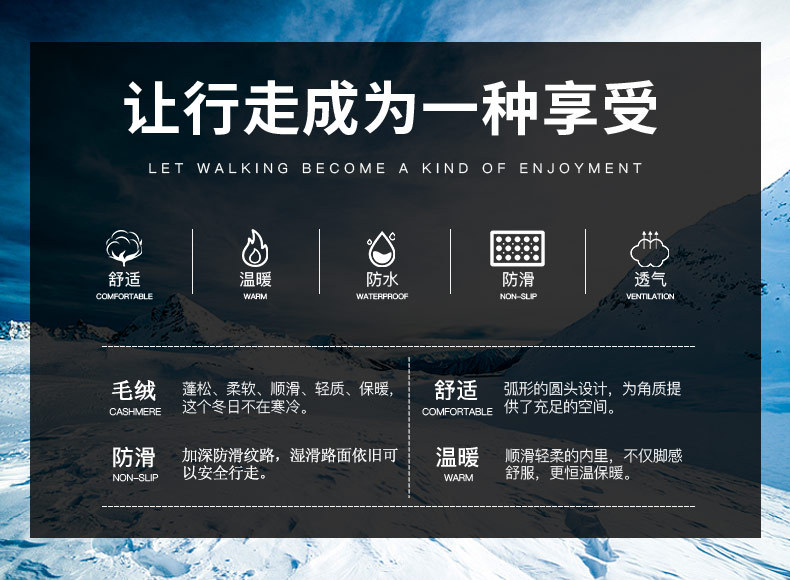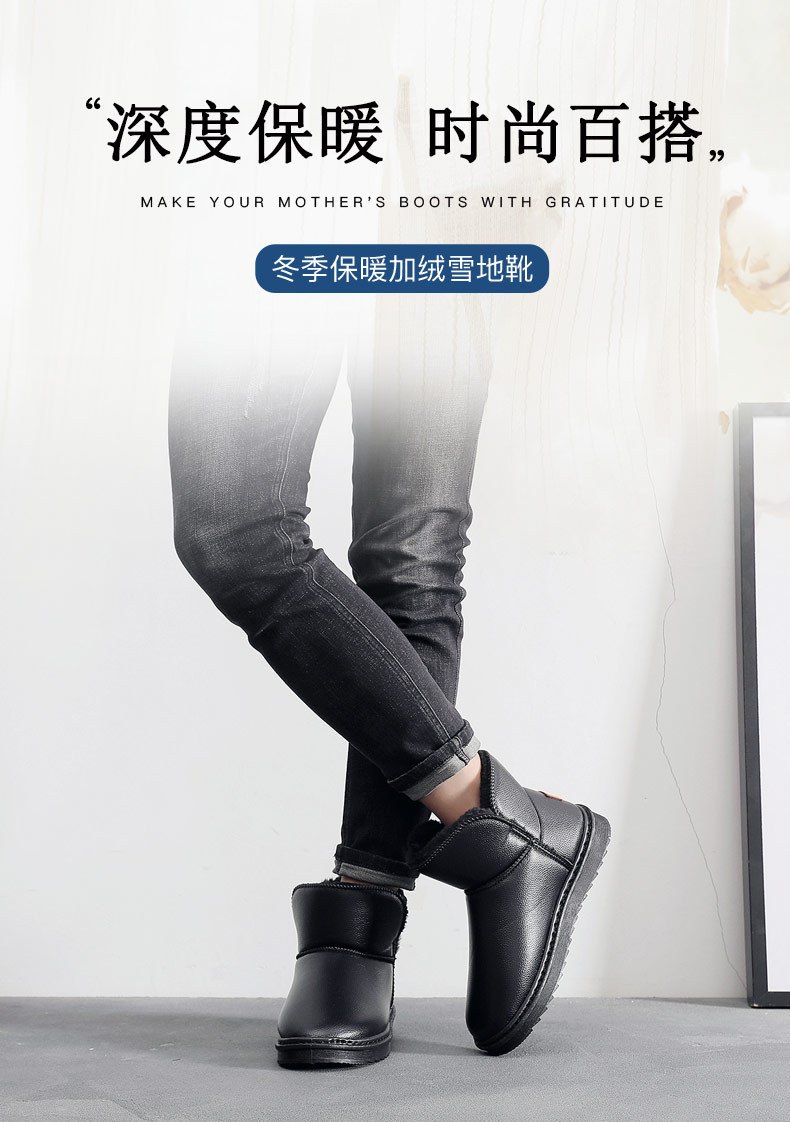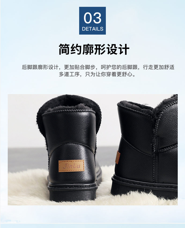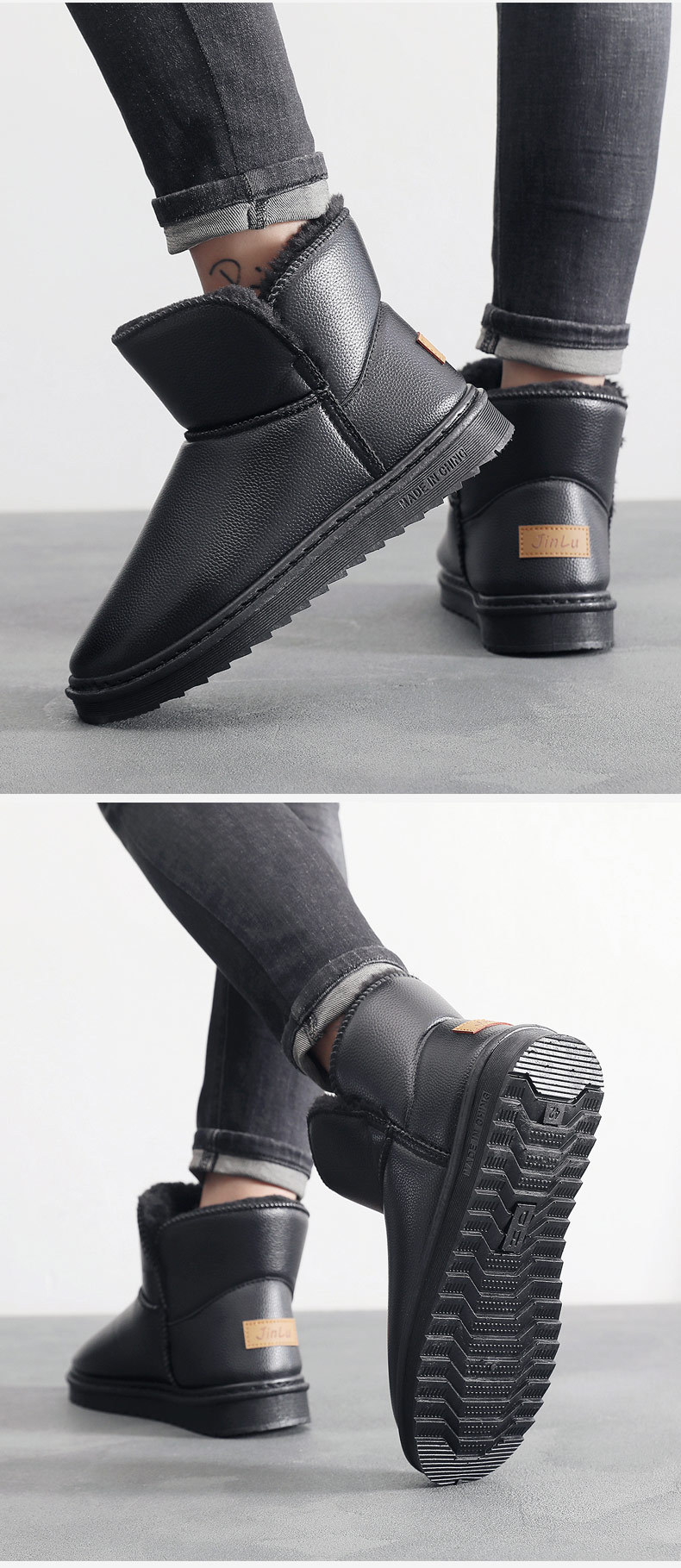 【超暖❗️皮面防水雪地靴】深度保暖时尚百搭,防泼水PU材质,保暖舒适绒毛,简约廓形设计,男士棉鞋防滑保暖加厚加绒厚底面包鞋舒适棉靴QQ