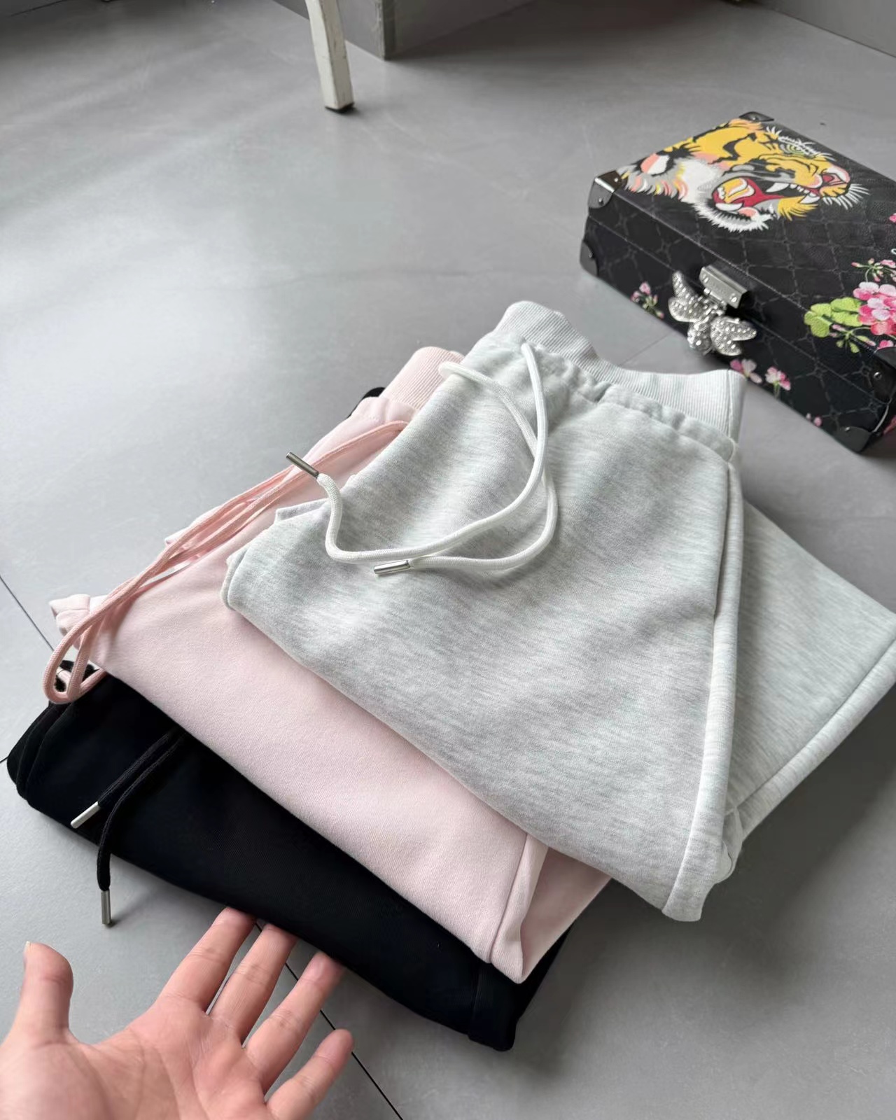 新款休闲运动瑜伽裤中腰阔腿卫裤,女神必bei款,卫裤这个单品真的不需要说太多,好穿就是了,超ji百搭面料是棉混纺面料,透气良好,柔软亲肤,轻盈保暖!高腰宽松紧设计,根据亚洲人的设计,腰部抽绳可置于外侧,减少臃肿的前侧口袋!后面装饰袋盖,一致拿捏的裁剪臀部拼接曲线一直延伸到裤脚处,看起来特别立体,在治愈粗腿罗圈腿等方面有极好的效果