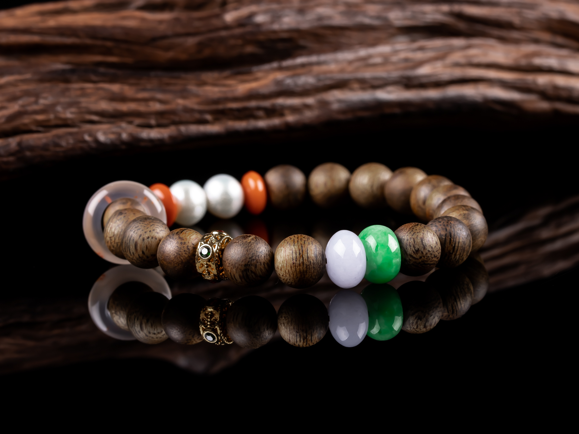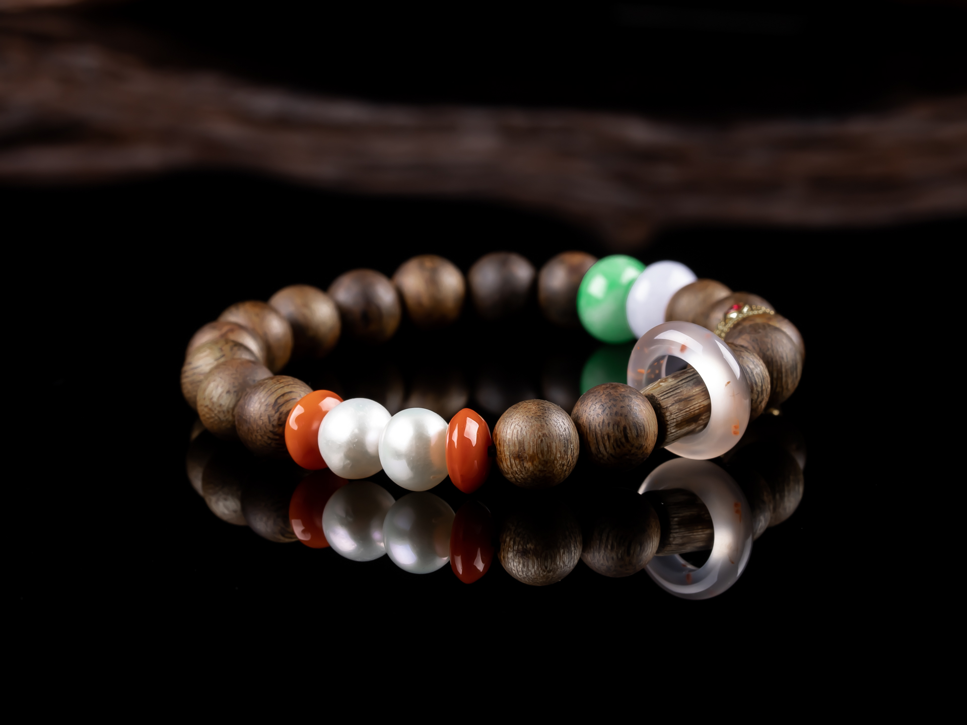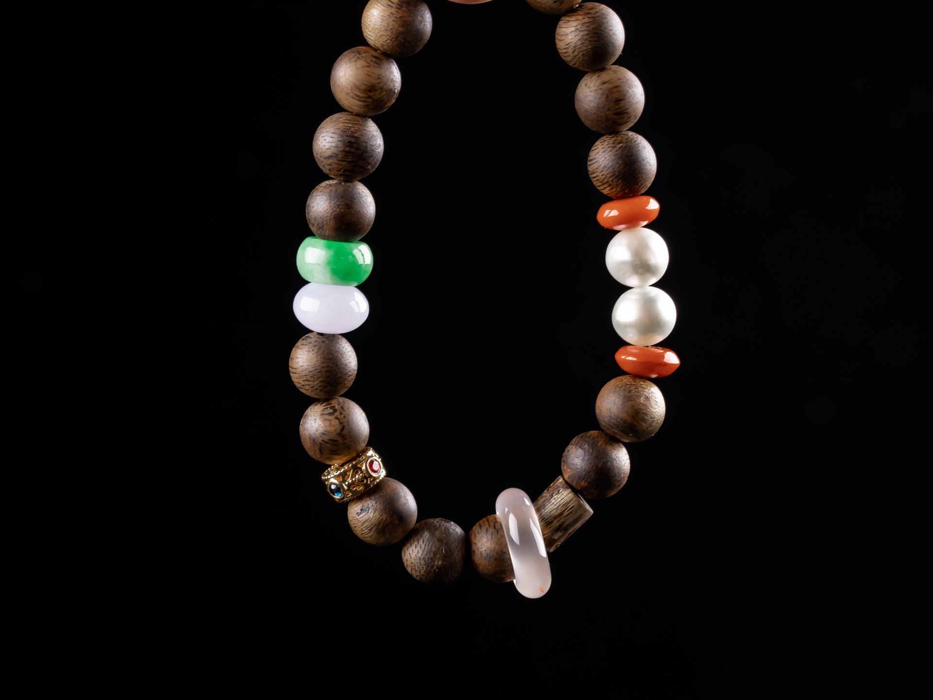 原创沉香DIY翡翠珍珠手串天然沉香珠子,珠子约8.5mm,手围15,原色原味,香味清甜自然,搭18K金隔片,翡翠珠子色泽靓丽+冰飘南红跑环-时来运转,搭配两颗珍珠,款式古朴素雅又不失时尚感,佩戴腕间尽显雅致。💰600