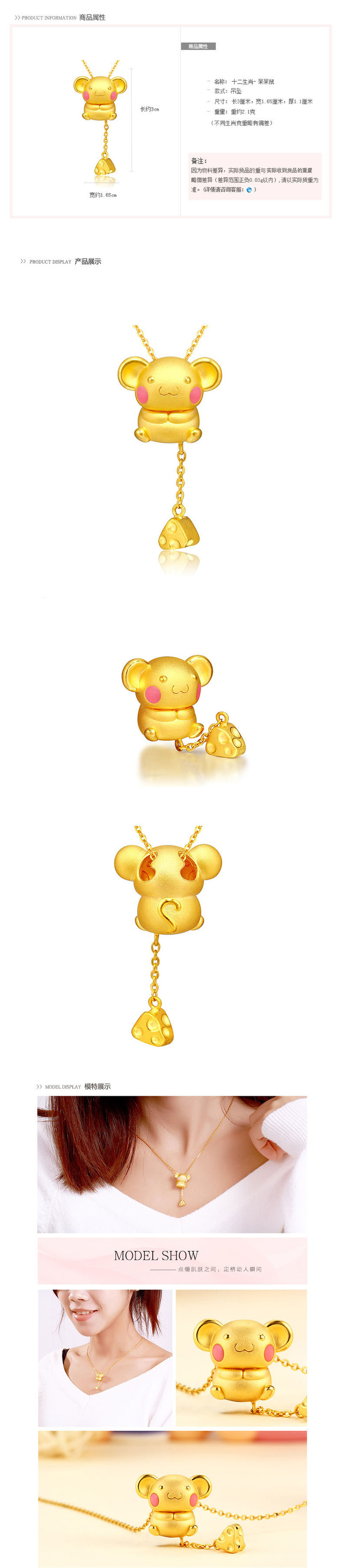 【项链】。本命年十二生肖鸡狗猪吊坠 Q萌卡通版镀3D黄金项链越南沙金女饰品