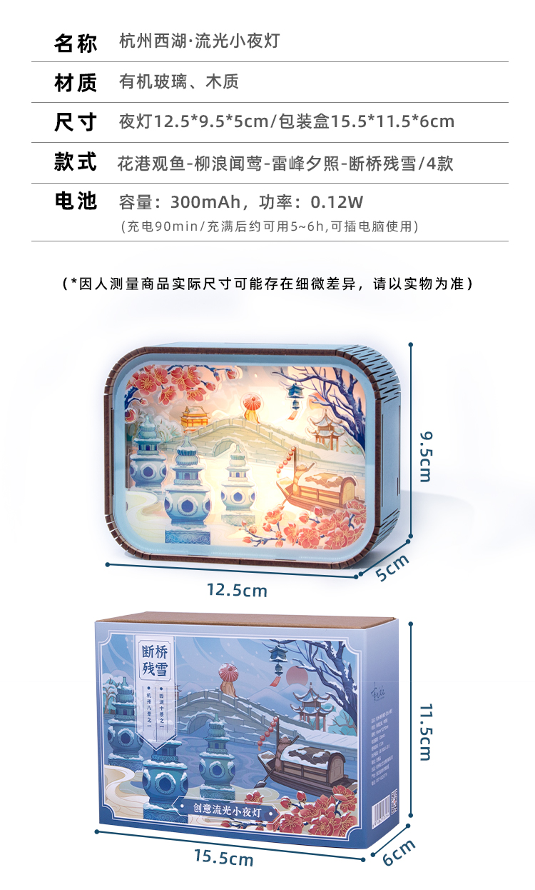 杭州西湖景区西湖流光小夜灯创意文创礼物