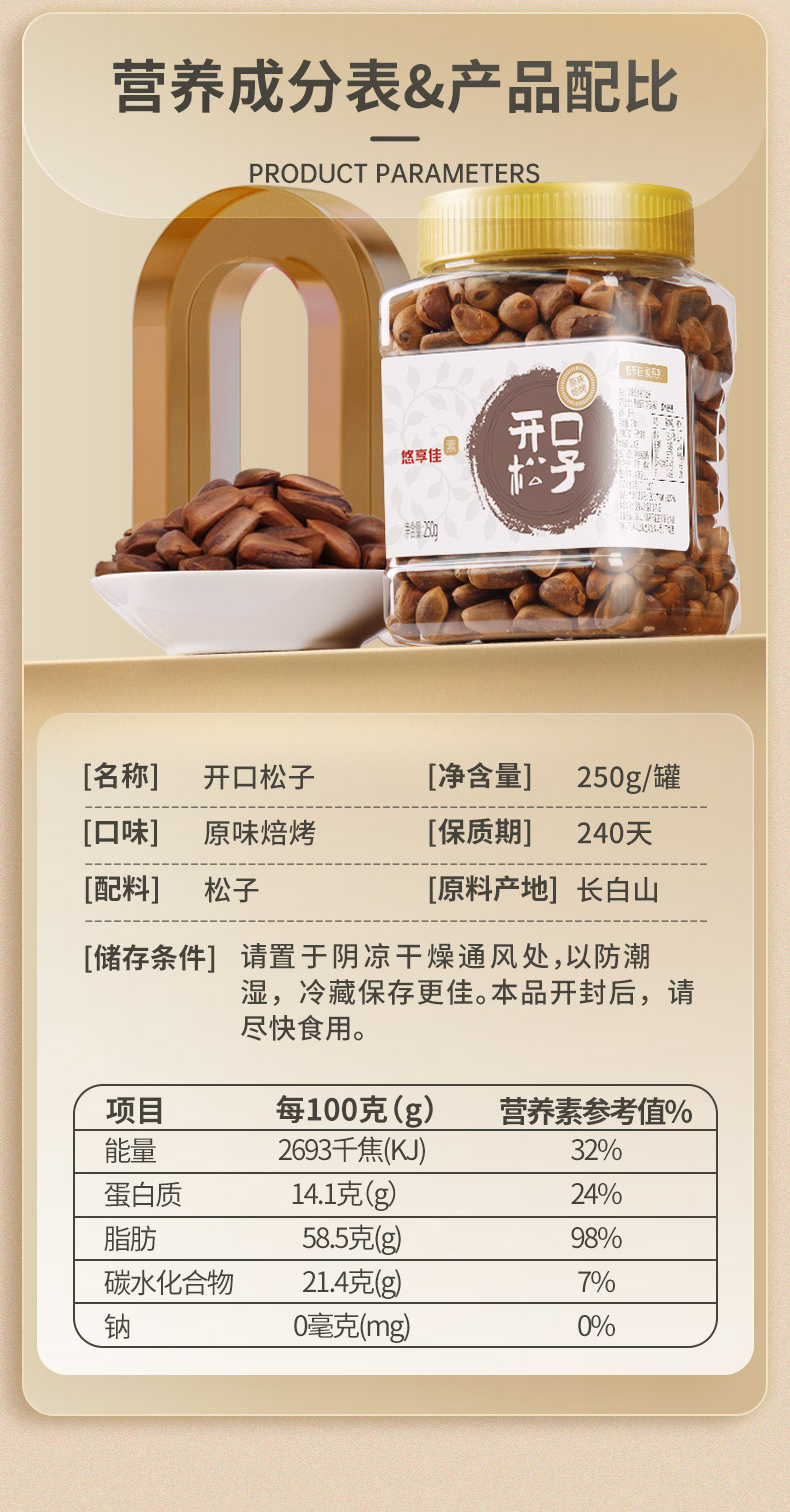 【悠享佳】东北黑松子手剥开口松子大颗原味坚果孕妇休闲零食罐装特产
