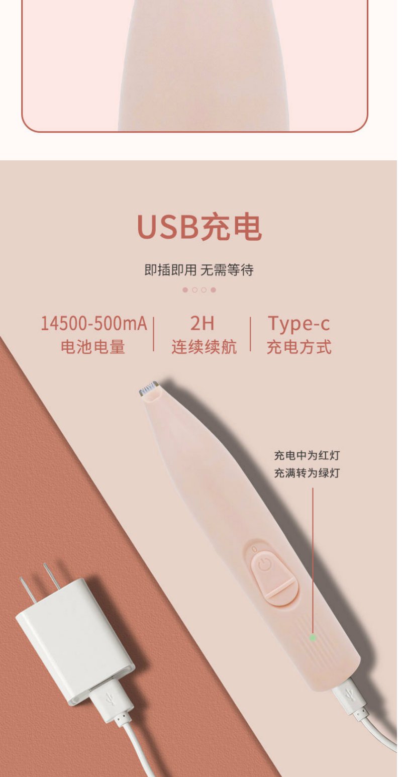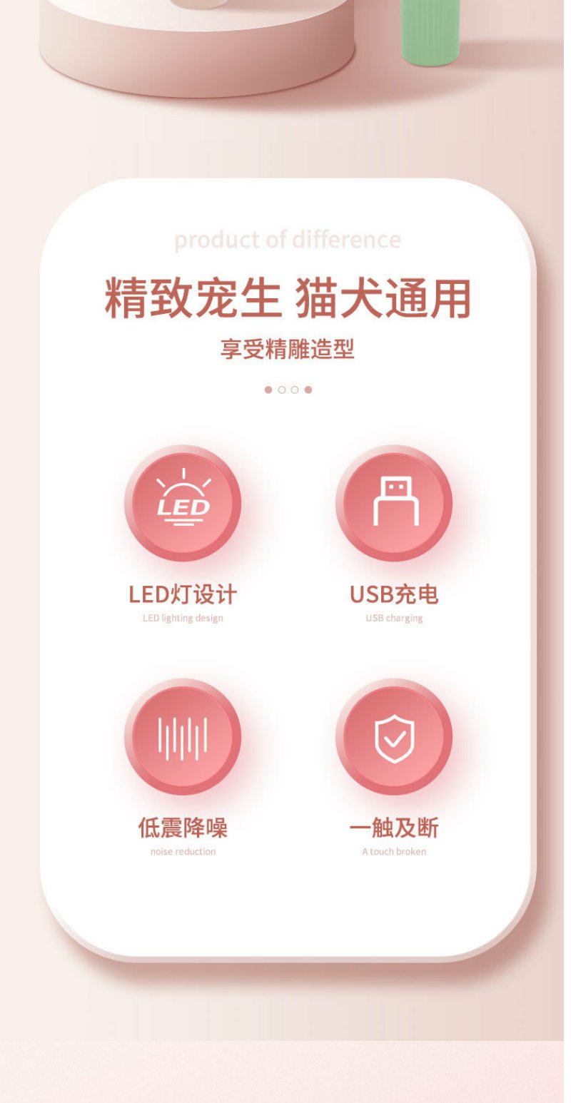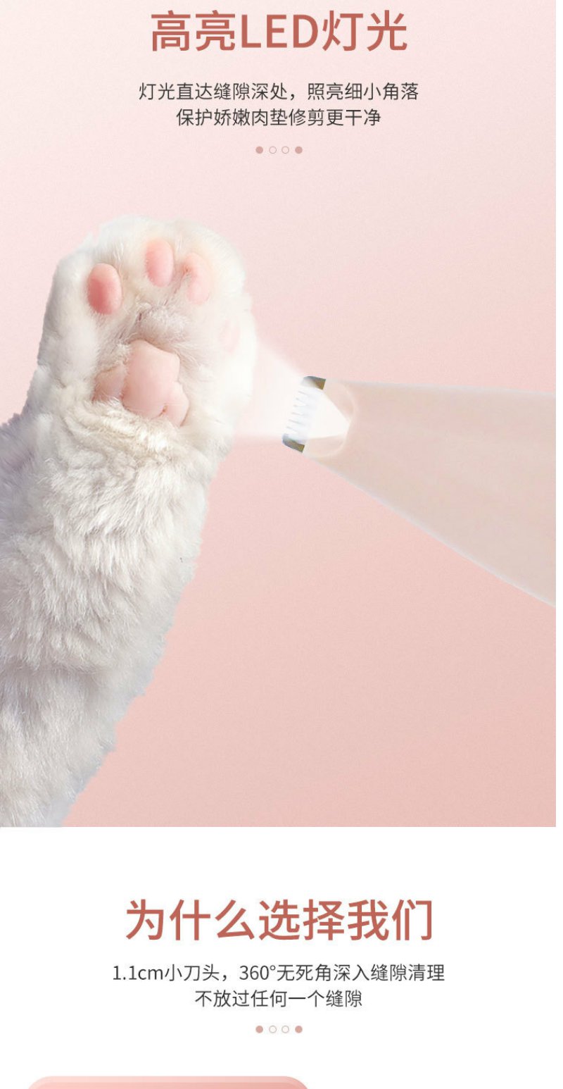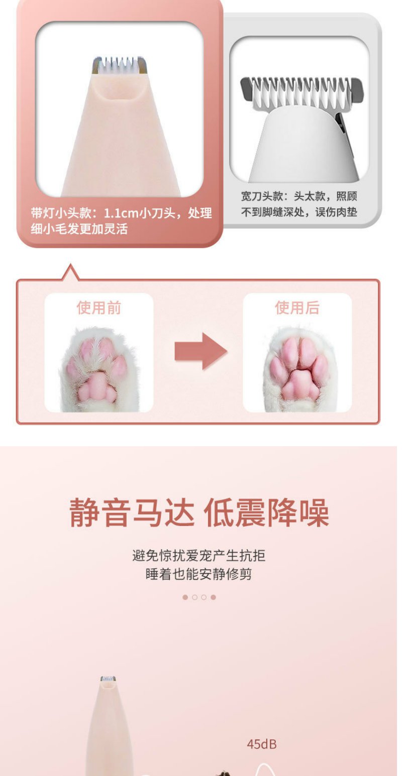 【严选】推荐!粉色充电LED灯 宠物剃脚毛器一套狗猫专用剃毛器推子电推剪电动静音修脚神器