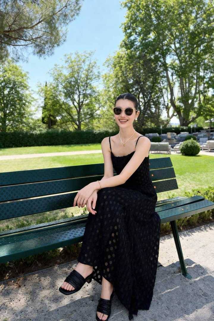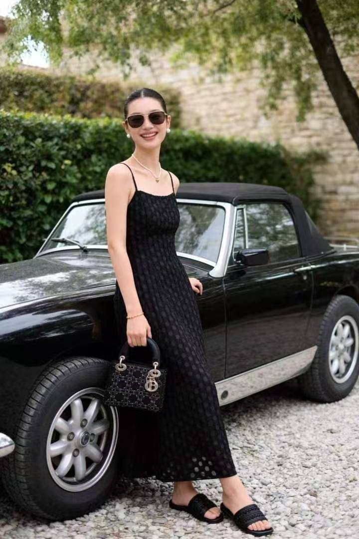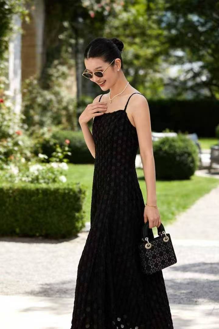 SC2S53_漆黑色_连衣裙_春夏_方领吊带提花收腰显瘦 A 字长裙_高级女装_BERNIEELEN伯妮斯茵