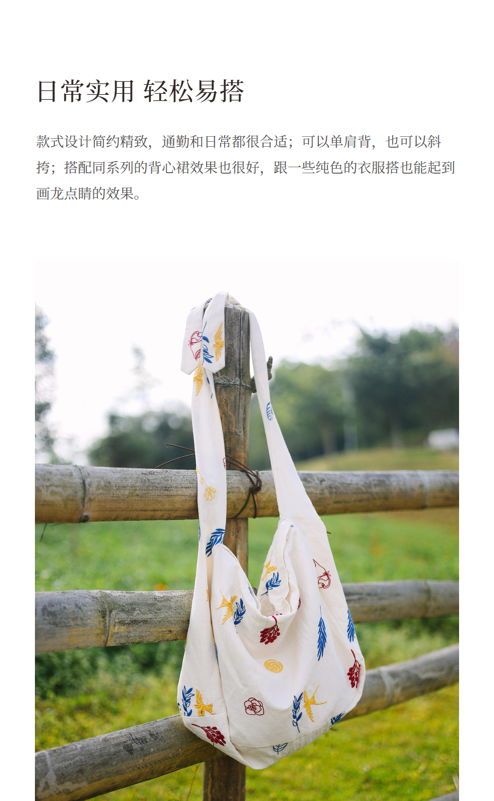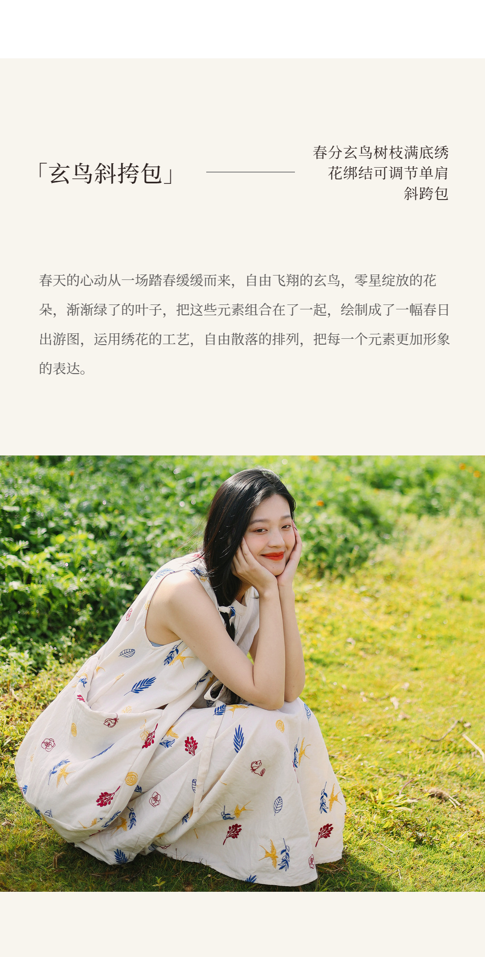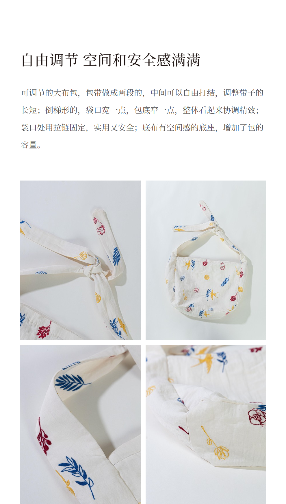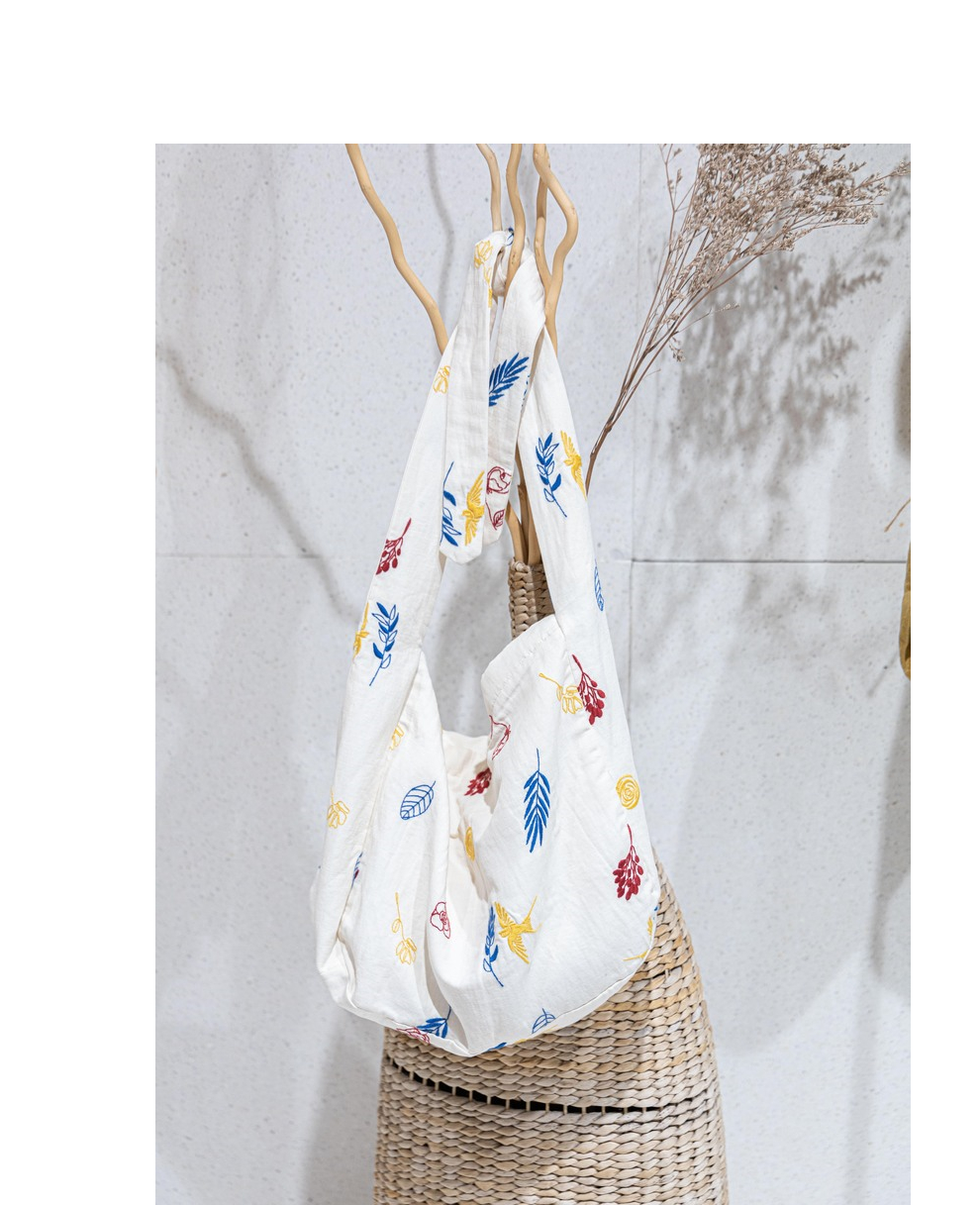 绽放185朵/玄鸟树枝满底绣花绑结可调节女包单间斜挎棉麻文艺布包