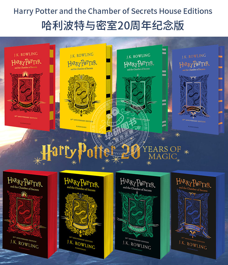 继去年魔法石20周年纪念版之后,今年又逢密室出版20周年,英国Bloomsbury出版社再次推出这套广受哈迷欢迎的学院纪念版。配以凯特·格林纳威大奖得主Levi Pinfold的插图和封面设计,加之每个学院的额外特色内容,带领我们回到霍格沃茨,重温魔法的魅力。