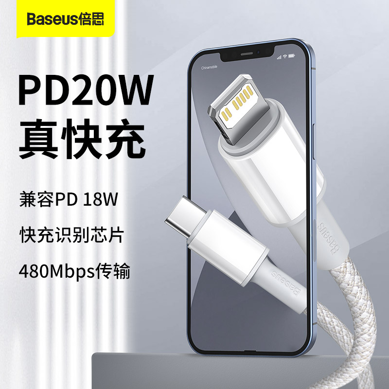 倍思 高密编织快充数据线Type-C to iP PD 20W 1m 白色