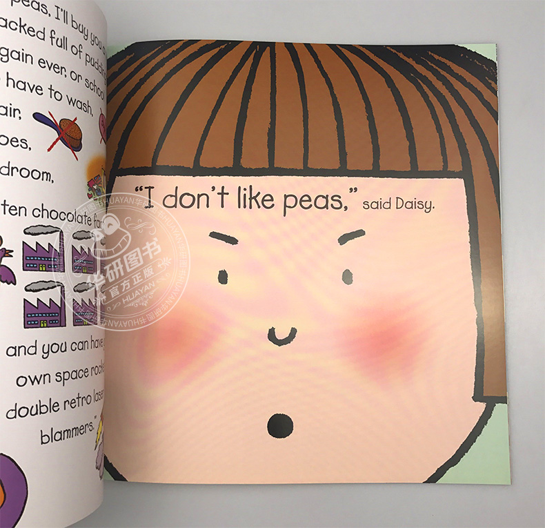 Daisy does NOT like peas. And there is NOTHING that will get her to eat them. Mum says she can have an extra pudding, a chocolate factory or a space rocket with double retro laser blammers - but it just wont work! Can quick-thinking Daisy save her tea time and come up with a cunning plan to turn the tables on Mum?