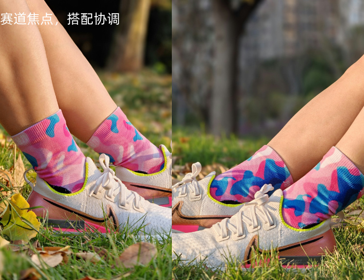 提取经典迷彩元素,以粉色为基调,加以亮蓝色组合,凸显女性元素,于运动之中不乏柔美年轻。