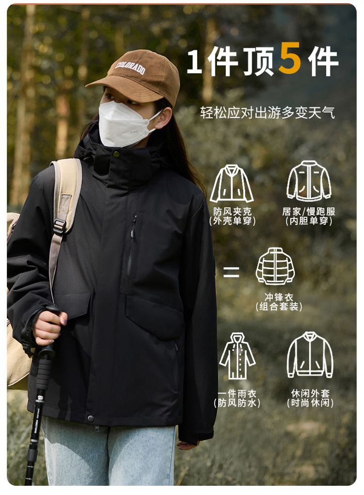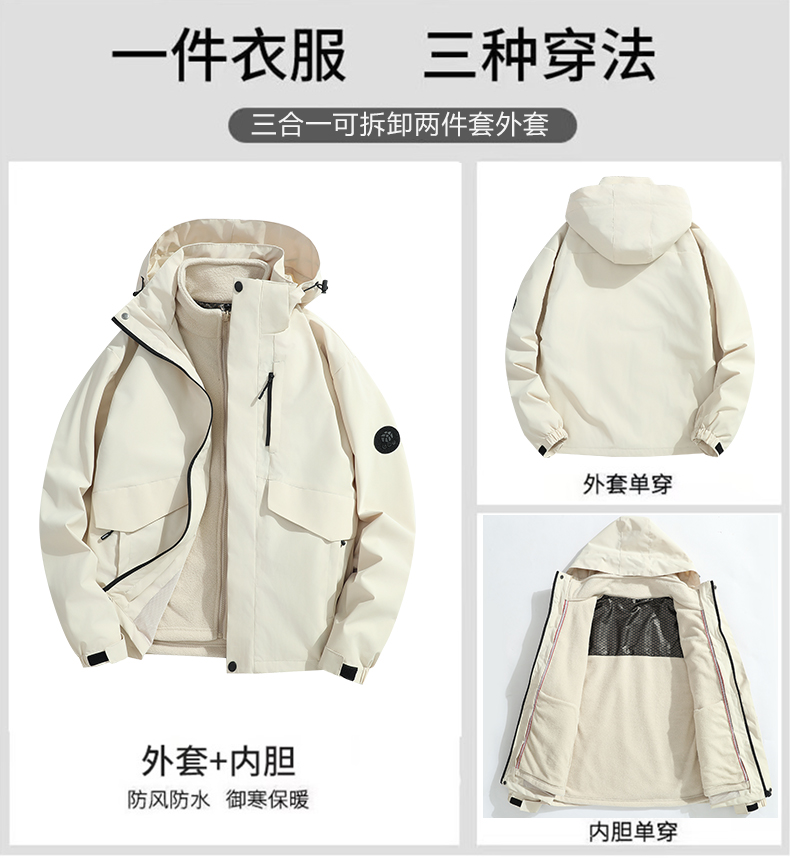 雪梵莱【男女款三合一防风衣】可拆卸三合一 (防水外壳+摇粒绒内胆) 保暖不臃肿 外套防风防雨,自由穿拆 不怕昼夜温差大!三防面料户外出行必备