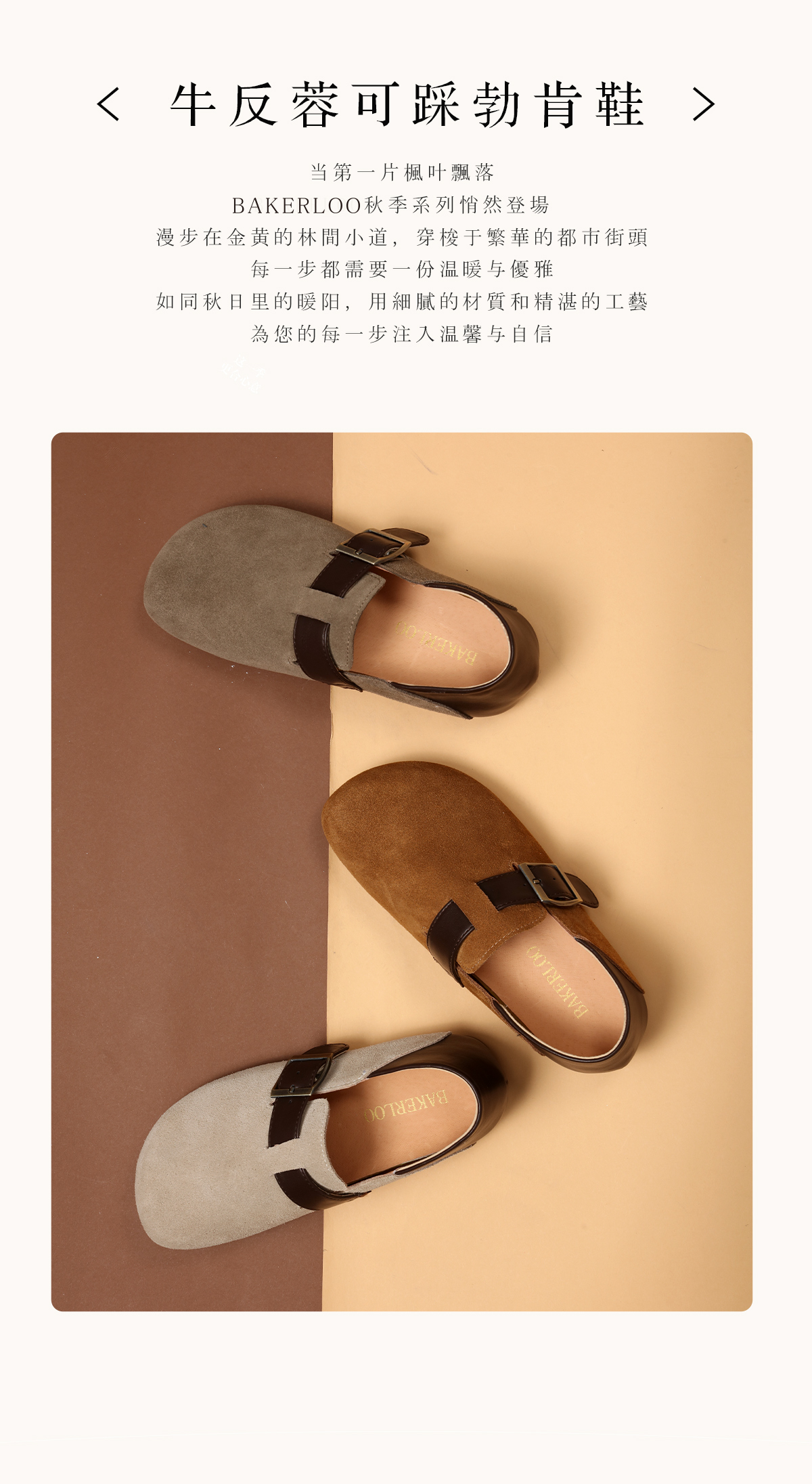 BAKERLOO牛皮反绒拼接可踩勃肯鞋YQ111