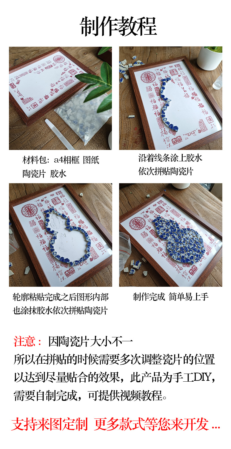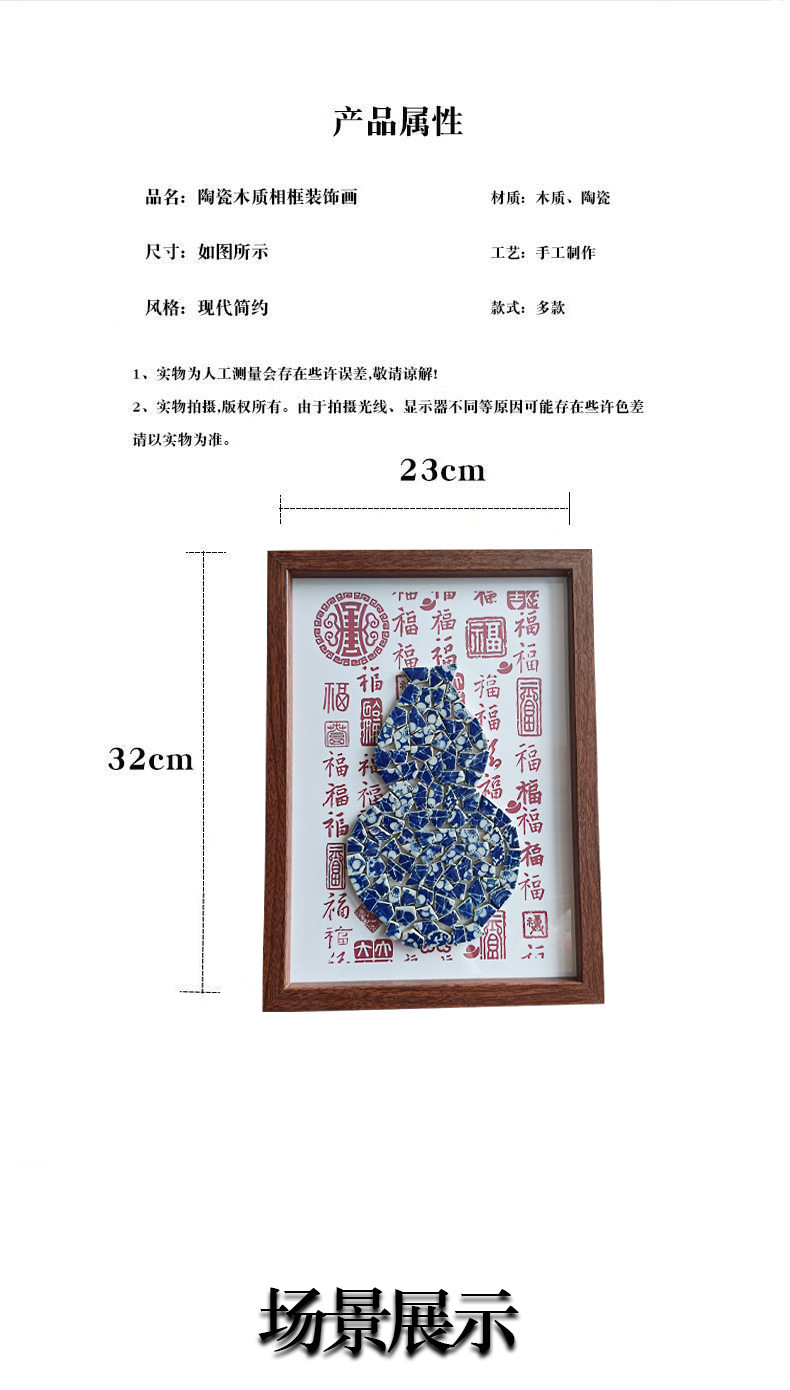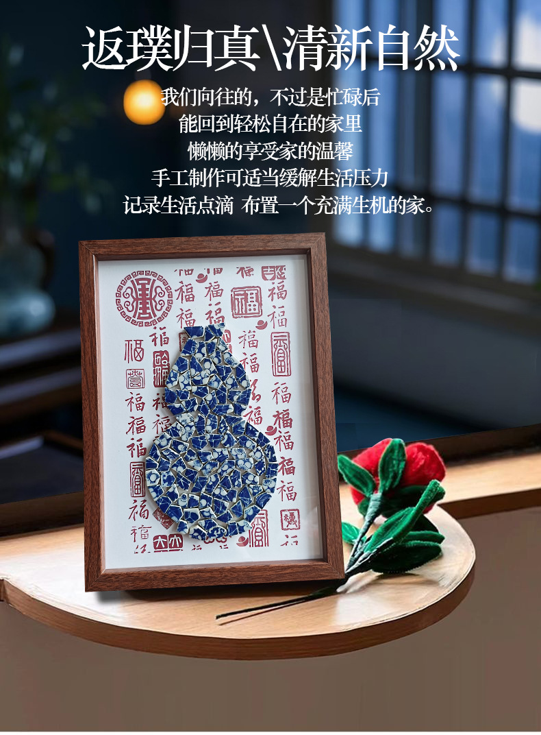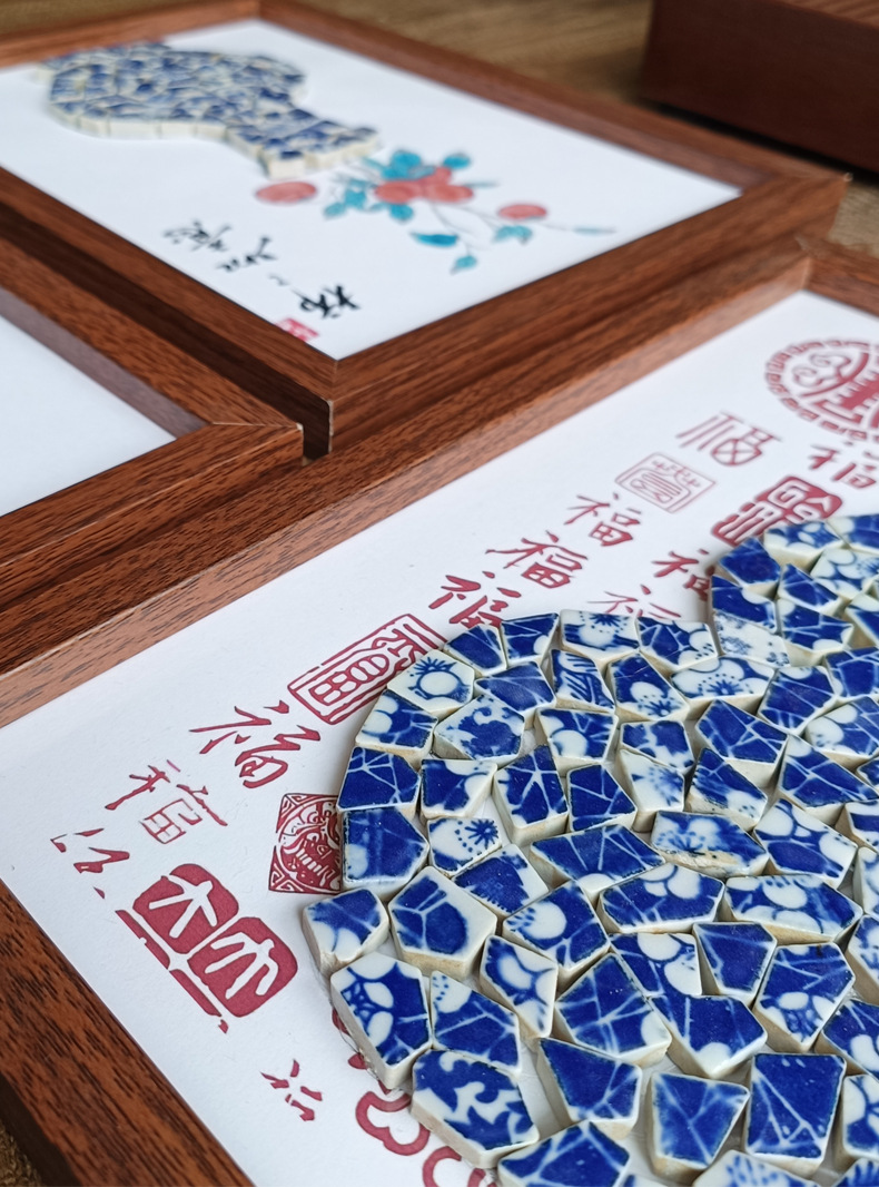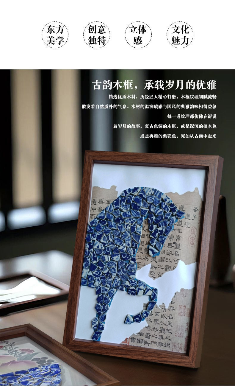 【马年限定❗️中式美学新年陶瓷画】东方美学 匠心独运 文化魅力,青花瓷手工diy相框装饰画景德镇陶瓷片拼贴春节宣传活动