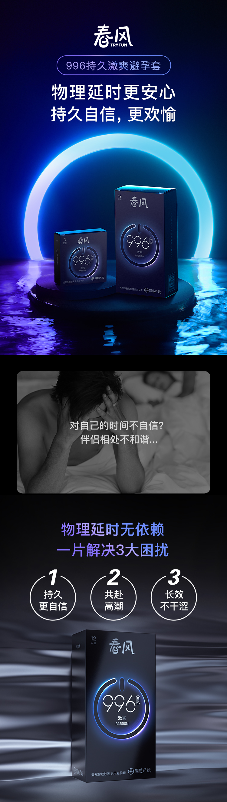 网易春风996超薄延时避孕套持久润滑安全套 男用套套 成人计生用品