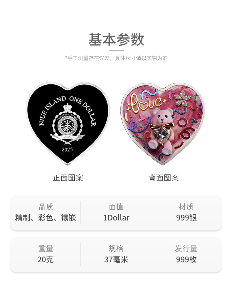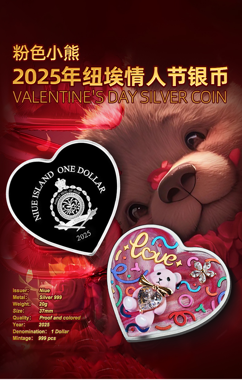 【新币发行】2025年纽埃情人节纪念币·粉色小熊