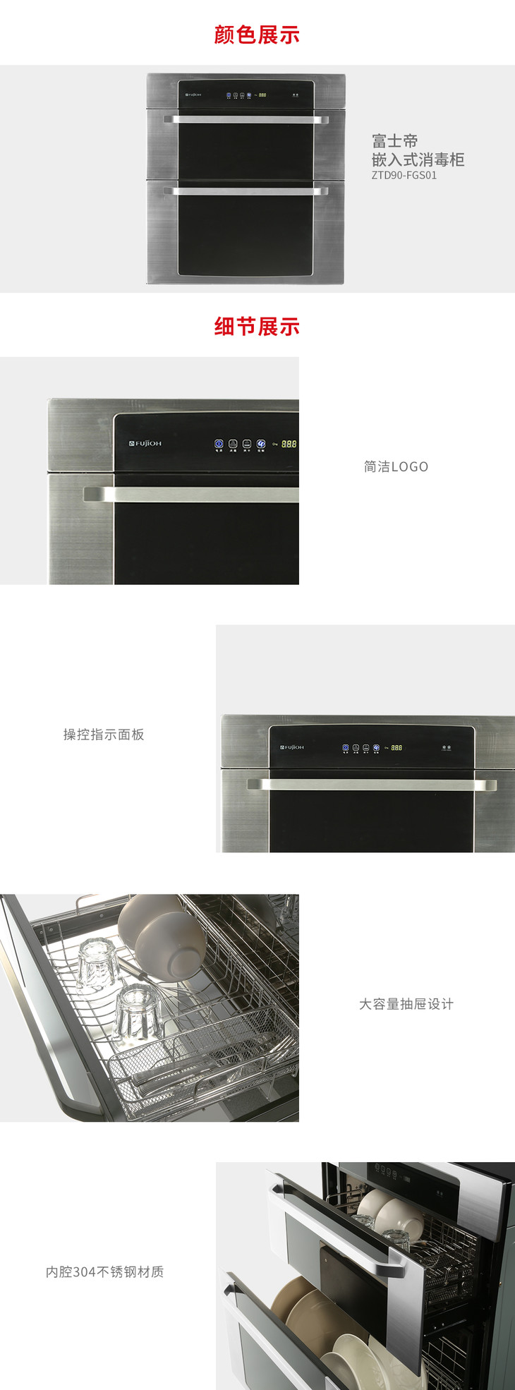 富士帝(FUJIOH) 嵌入式消毒柜 黑色 ZTD90-FGS01 黑色