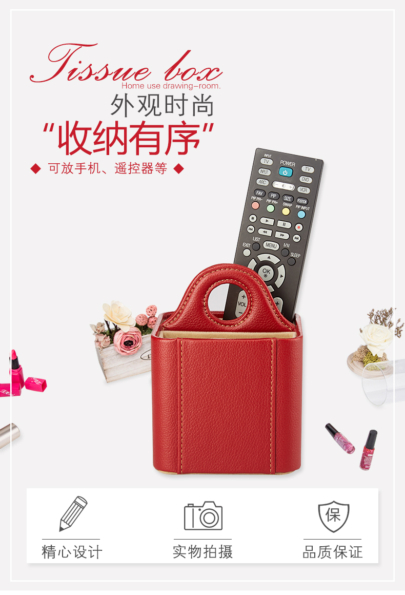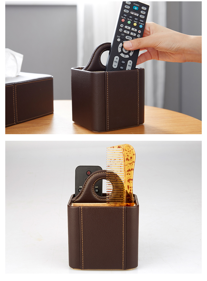 【6F】多样屋(TAYOHYA)桌面遥控器收纳盒家居数据线手机杂物插座PU革皮质荔枝纹多功能储物盒