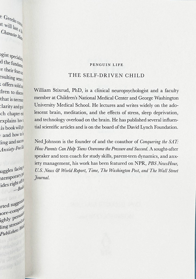 William Stixrud,博士,临床神经心理学家,儿童国家医疗中心和乔治华盛顿大学医学院教员。他广泛地讲授青少年的大脑、冥想、压力、睡眠不足和技术过载对大脑的影响。他发表过几篇有影响力的科学论文,是大卫·林奇基金会的董事。