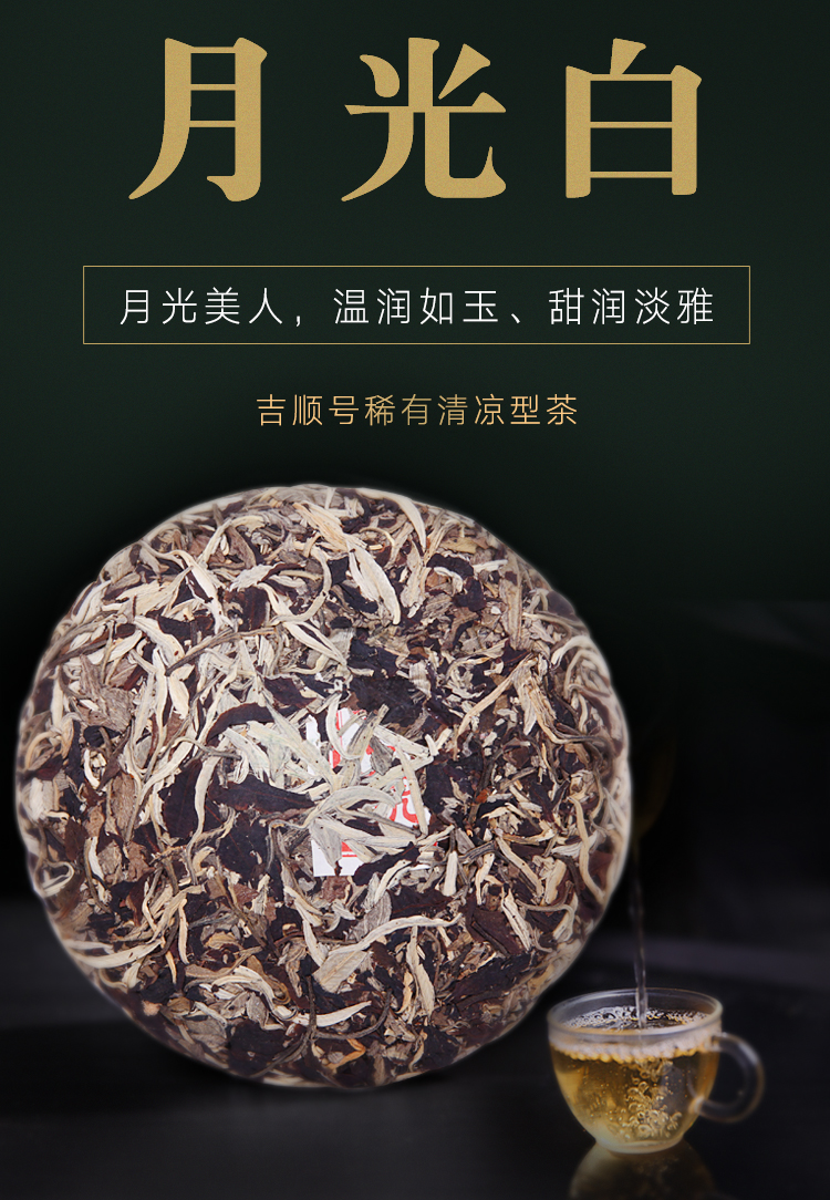 吉顺号2019年月光美人古树白茶老白茶357g/饼