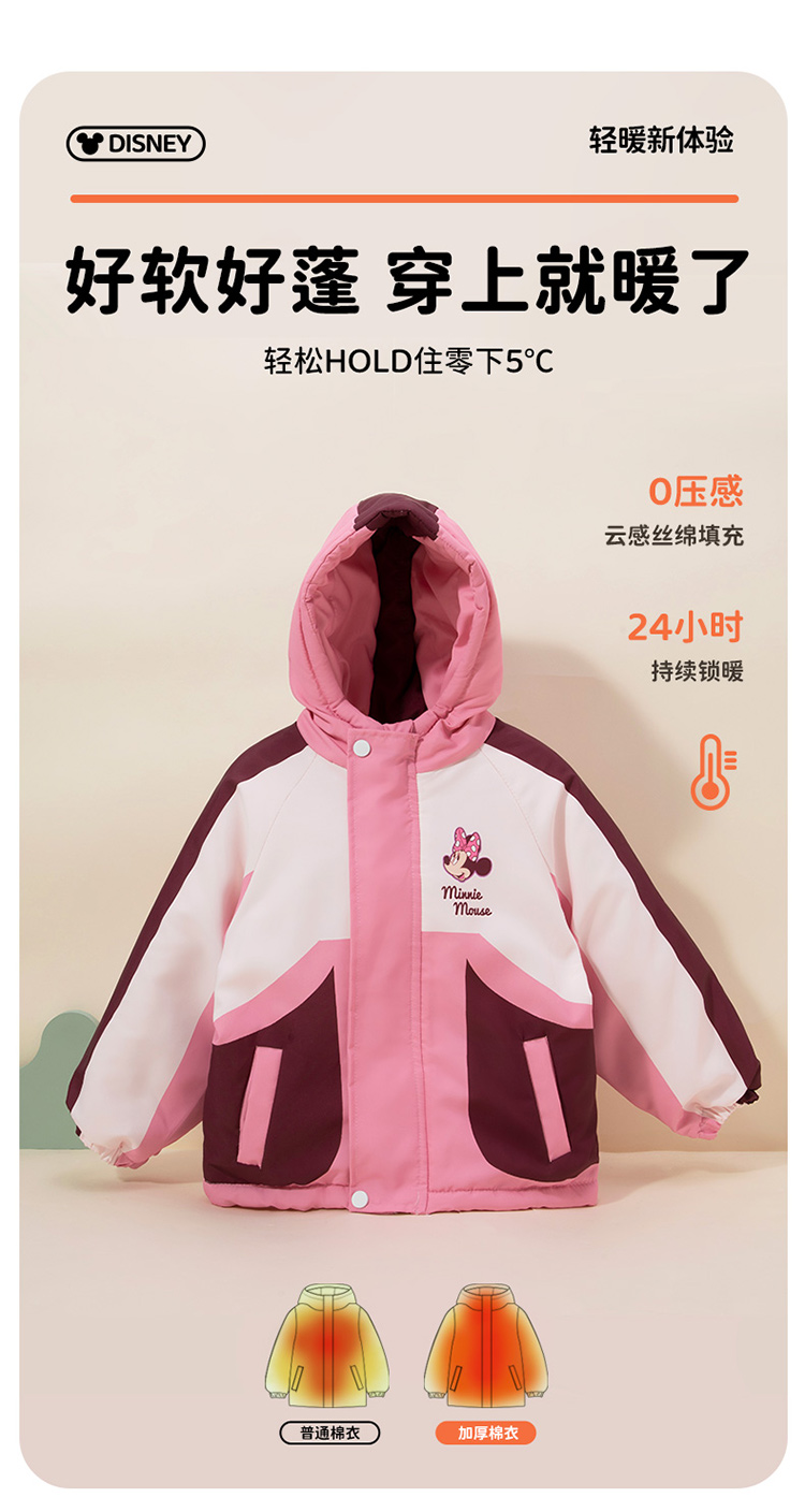 迪士尼女童夹棉外套棉服连帽外套ZD4DS016