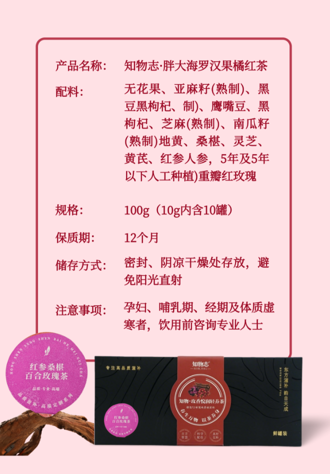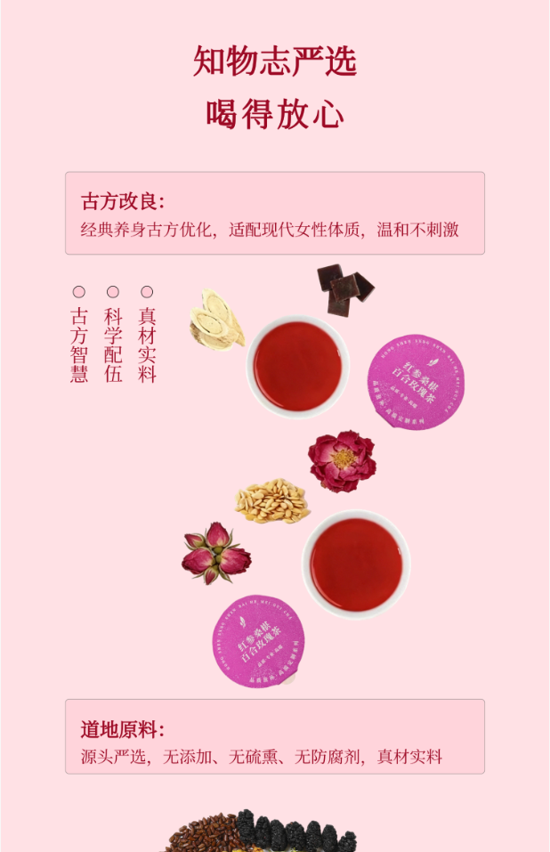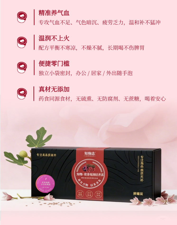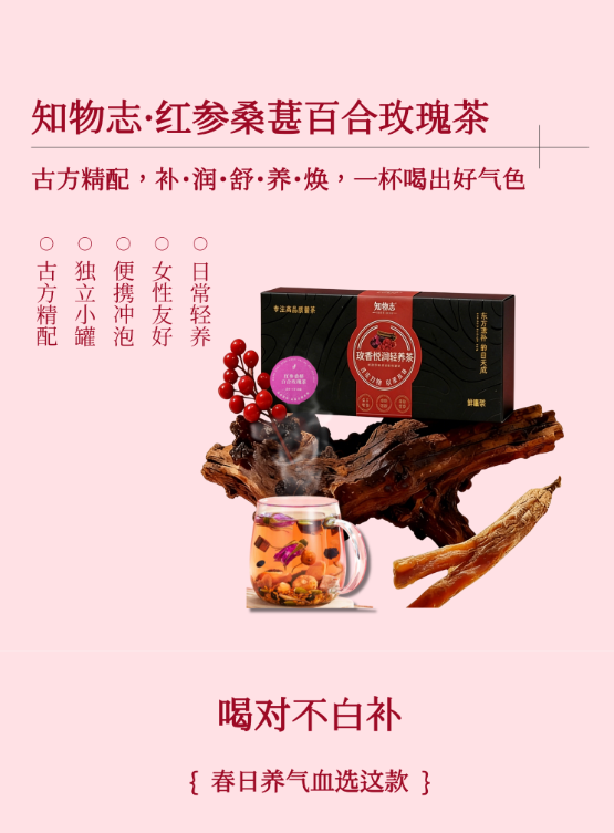 知物志·玫香悦润轻养茶红 参桑葚百合玫瑰茶 玫香悦润轻养茶以花养人好气色 舒缓解郁熬夜党养生茶