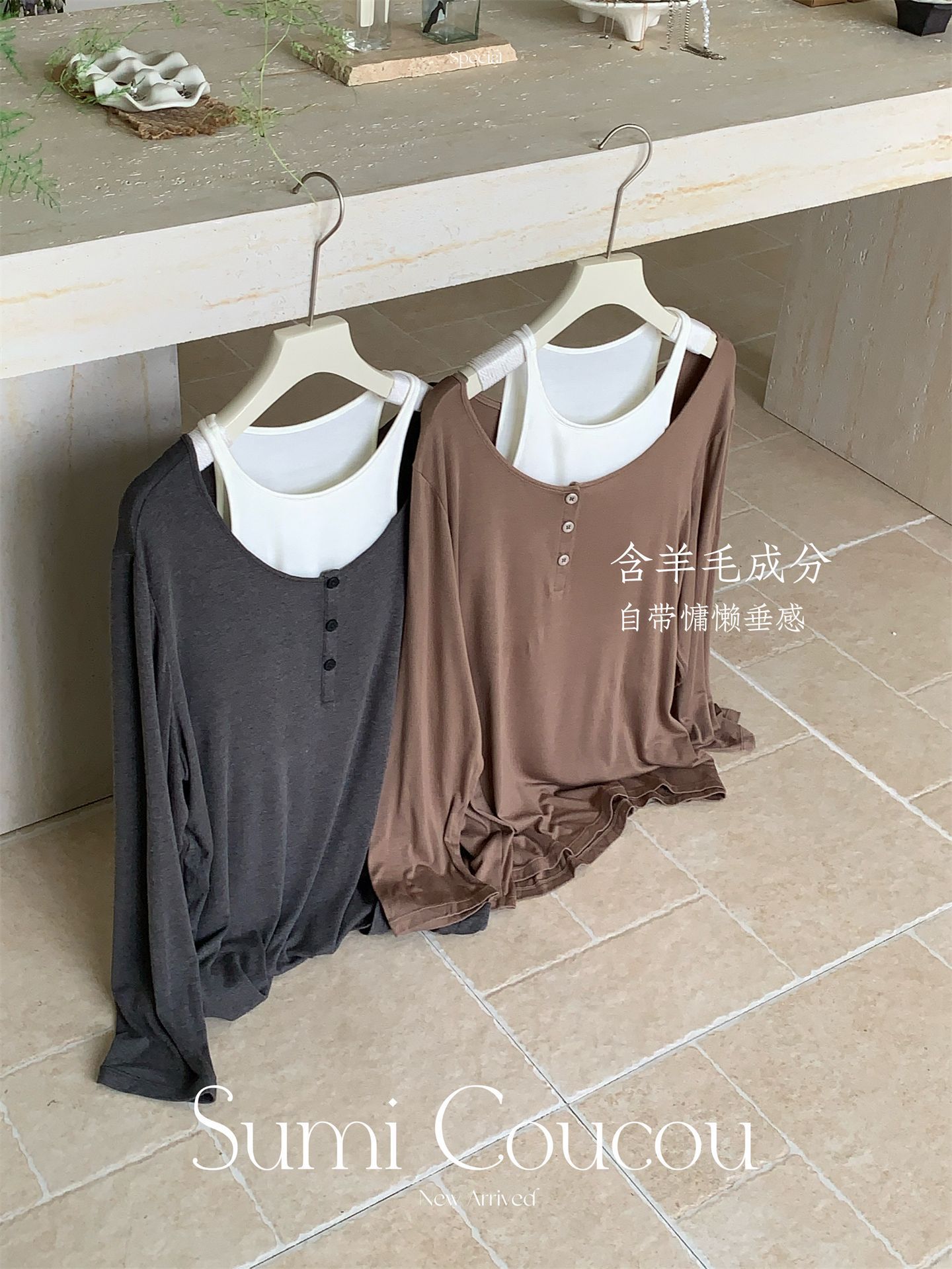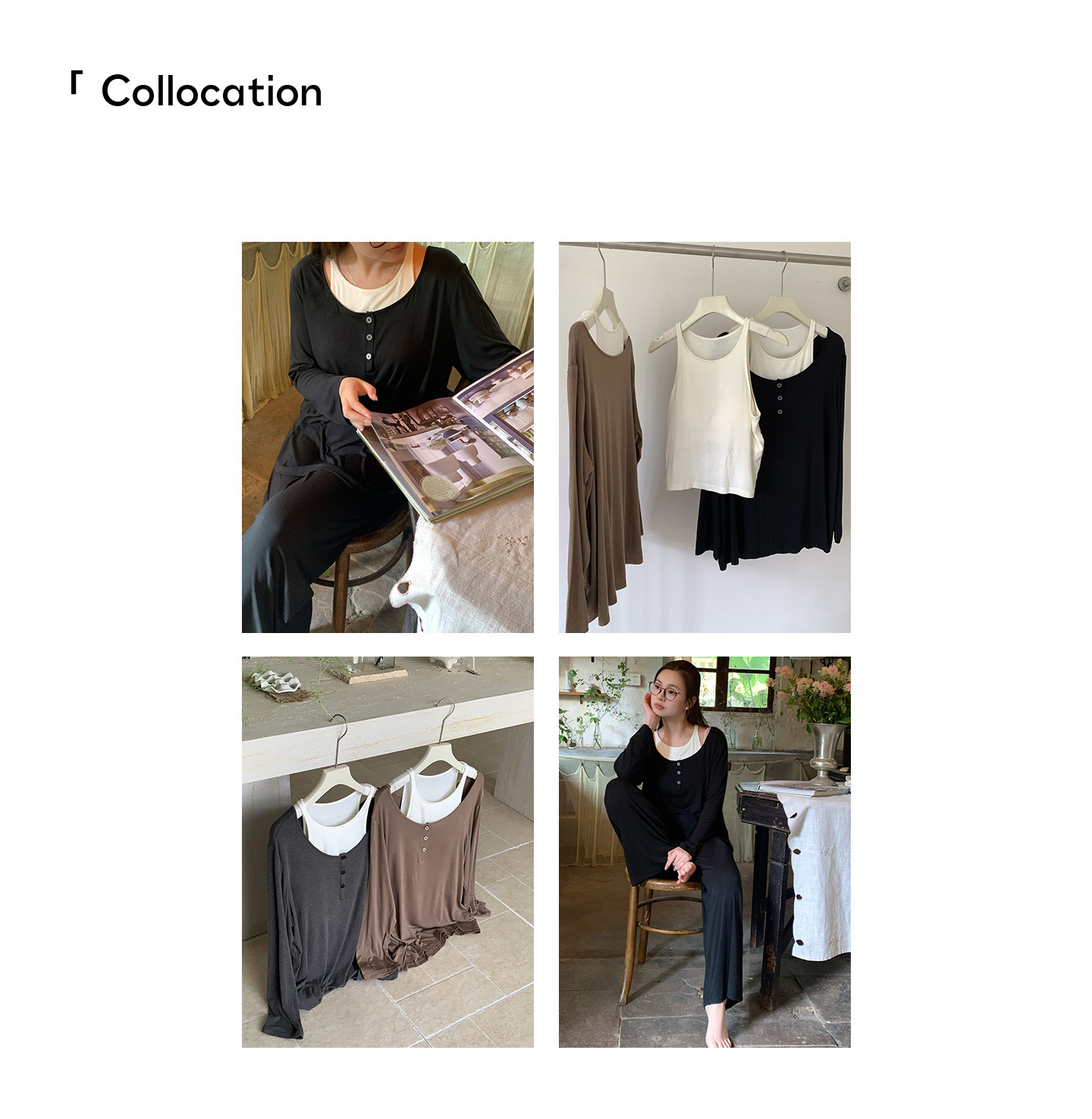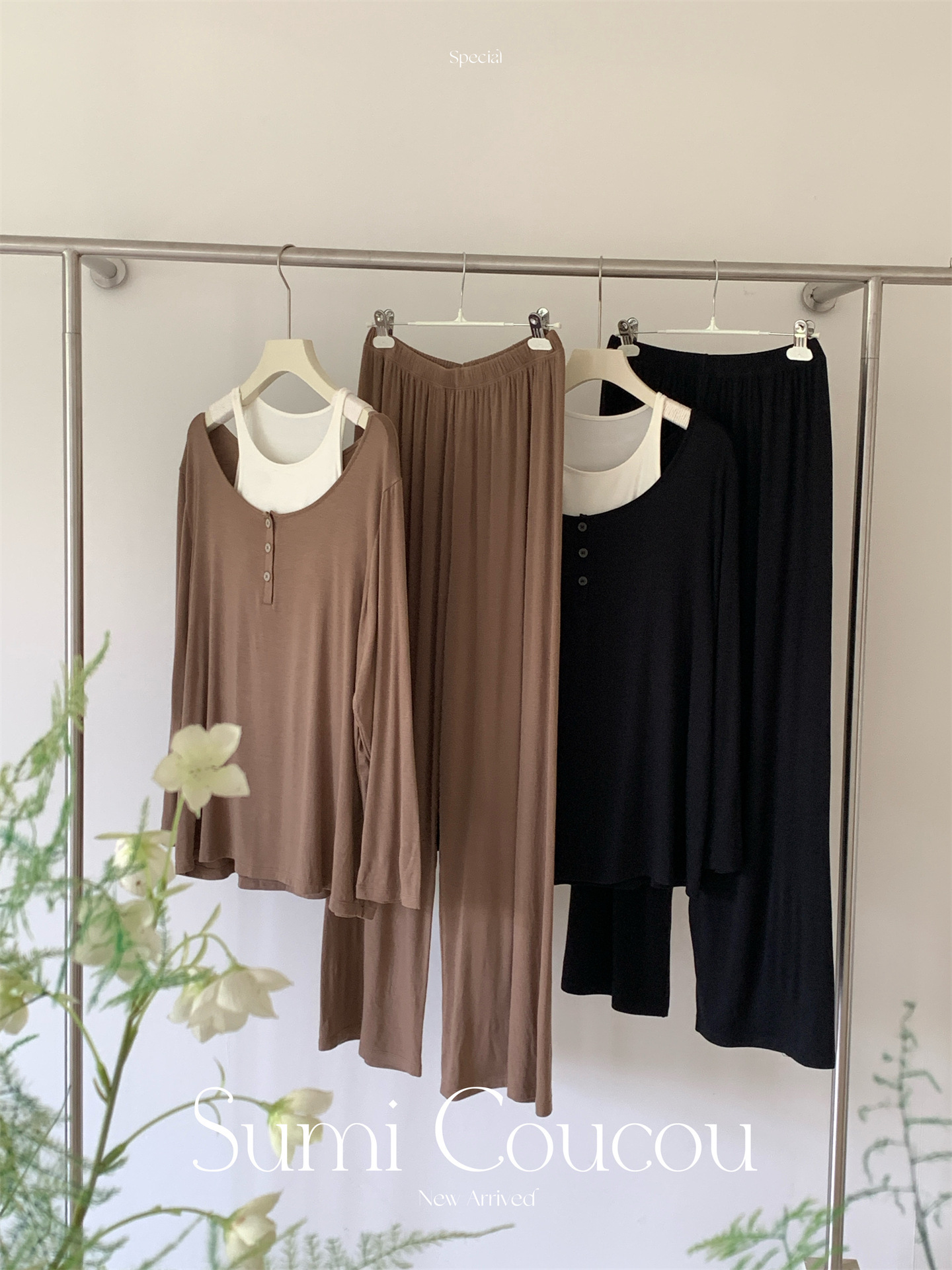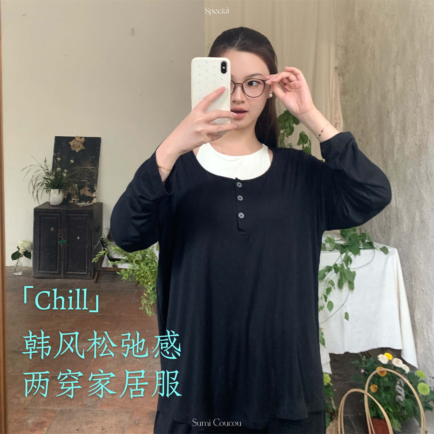韩风松弛感~可外穿保暖细羊毛家居服三件套 带胸垫背心+长袖+长裤韩系新款睡衣休闲套装