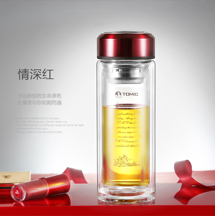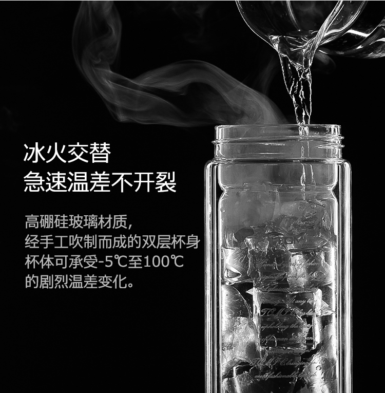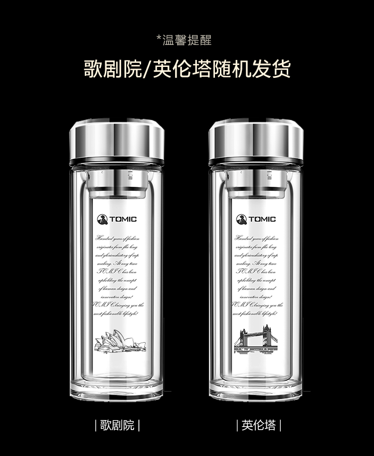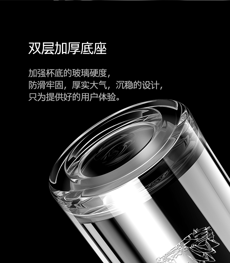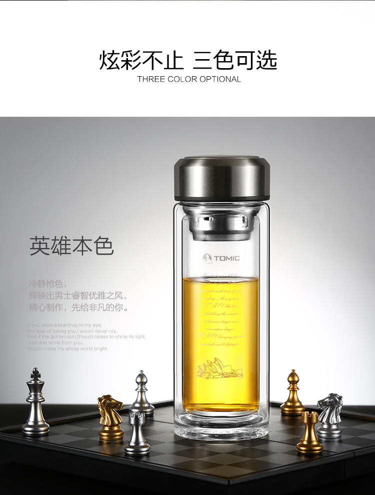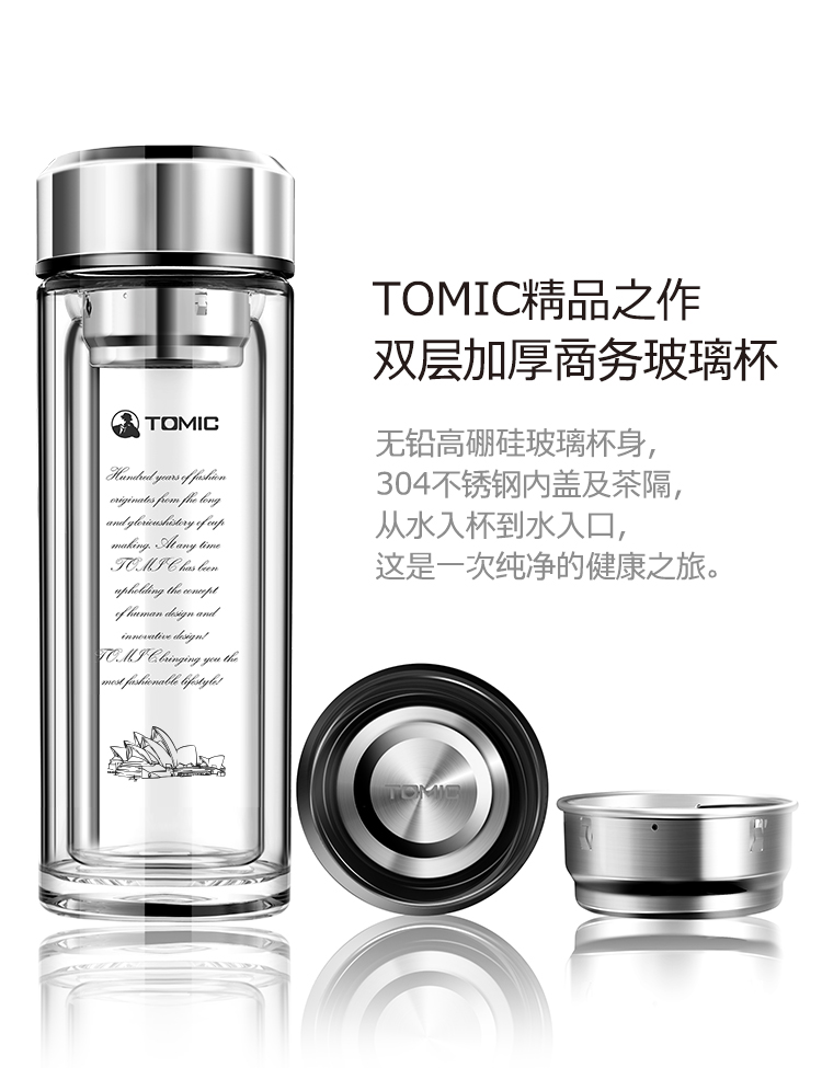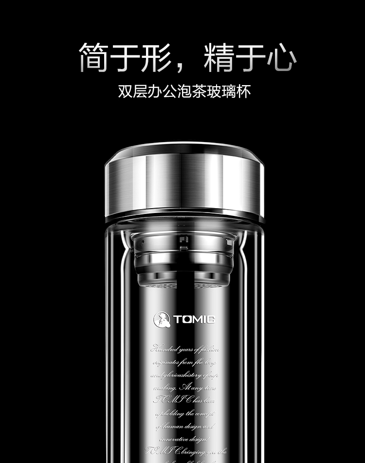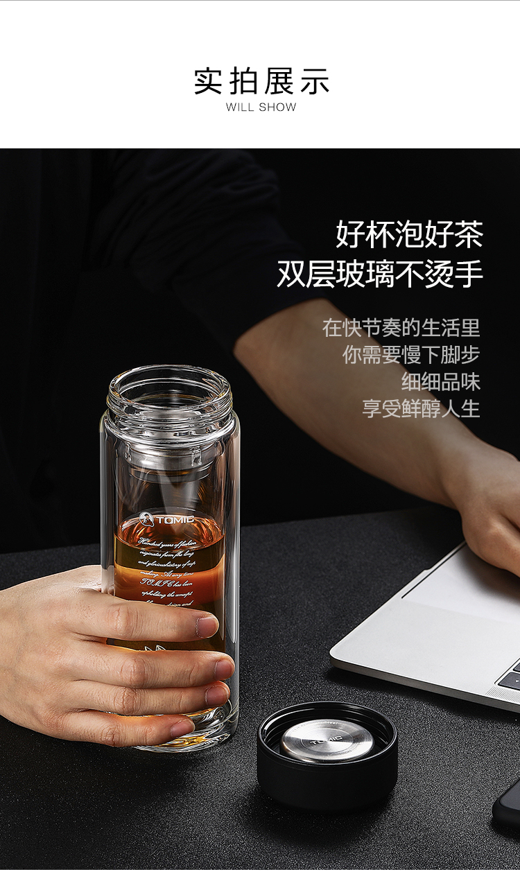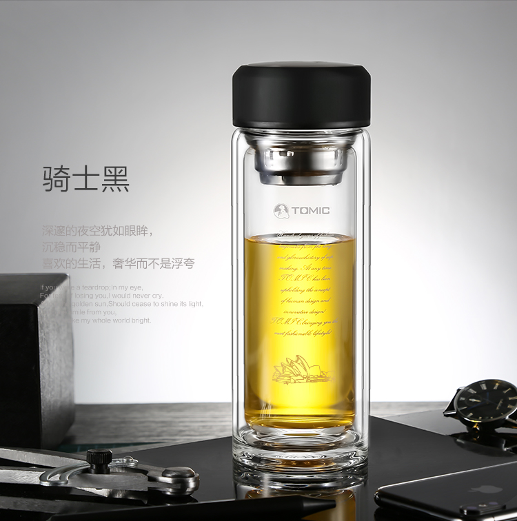 特美刻(TOMIC)双层玻璃杯男商务玻璃水杯透明家用茶杯车载便携隔热泡茶杯子特美赢杯TG9502G 黑色360ML