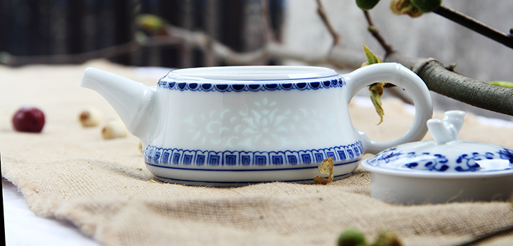 景德镇陶瓷 国瓷红叶 8头手绘茶具青花兰花
