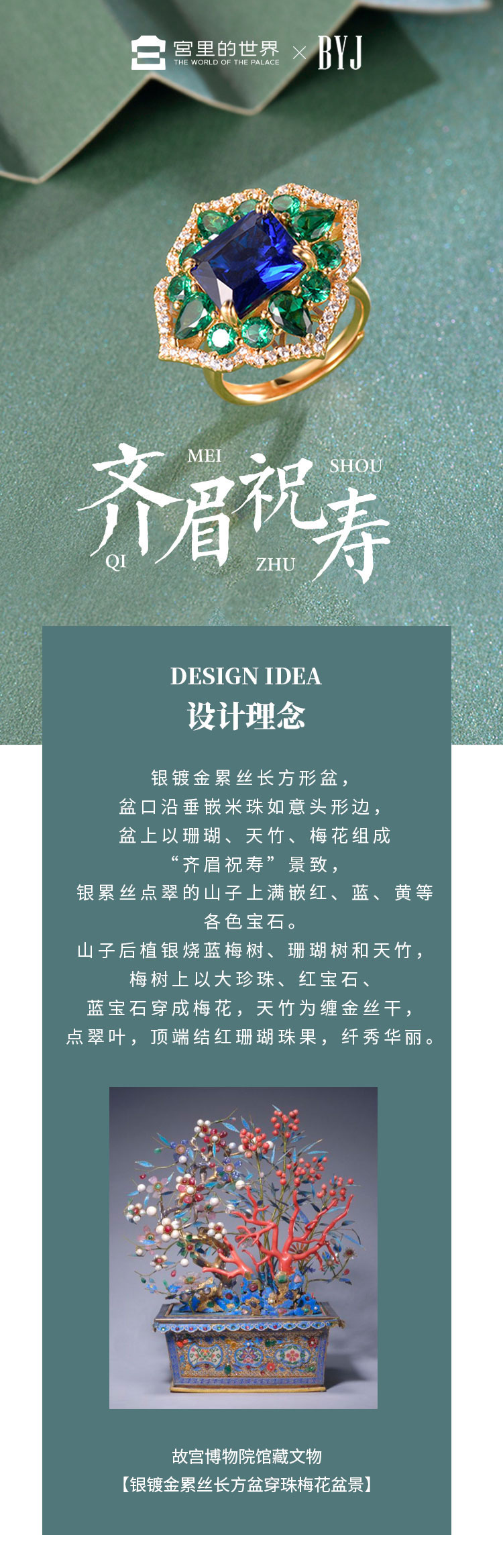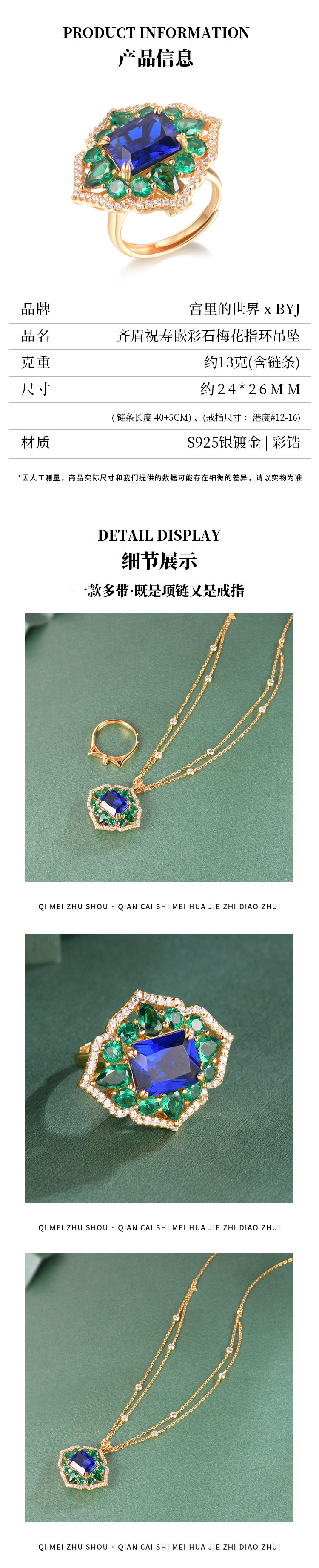 【采购专享】宫里的世界&BYJ 齐眉祝寿梅花戒指项链两用款 嵌彩石