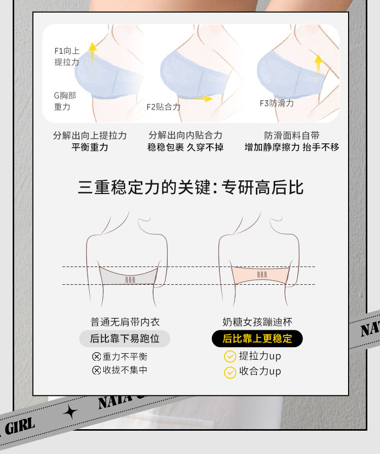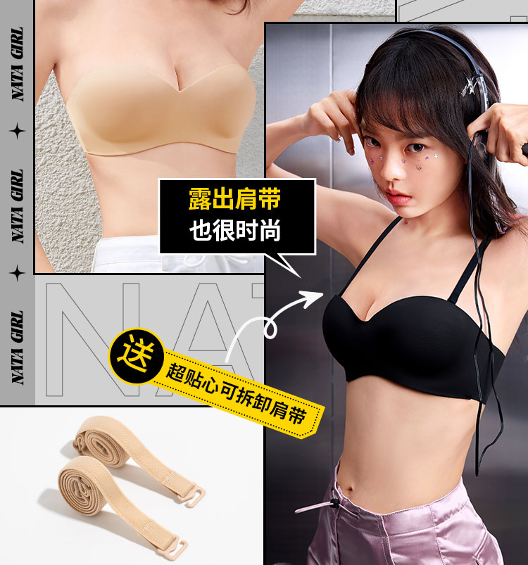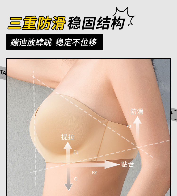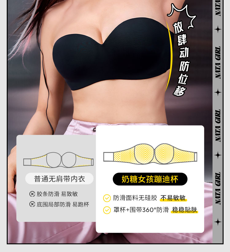 [蹦迪杯]无肩带半杯文胸防滑蹦跳不掉挺拔露肩内衣