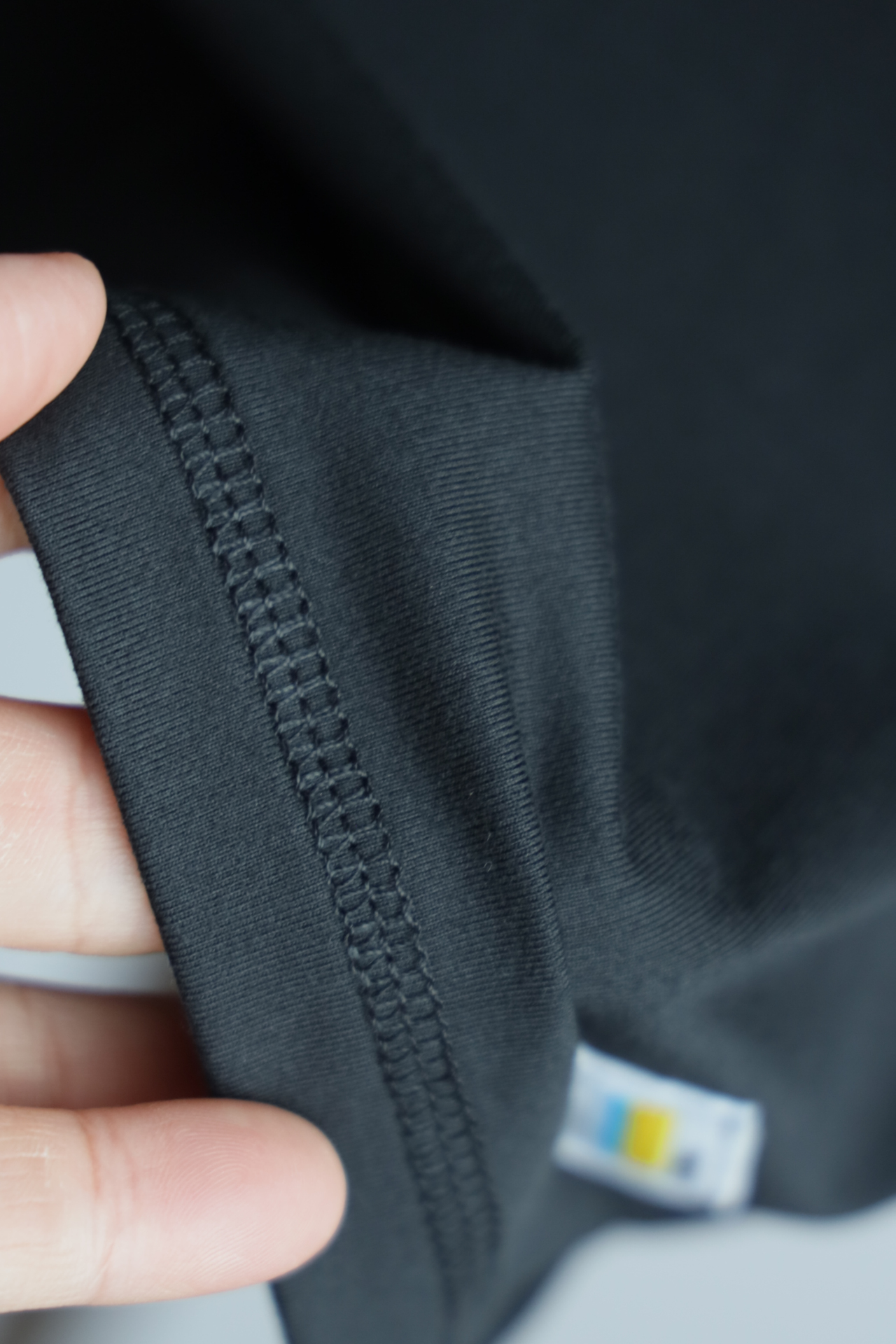 下摆标志性彩虹logo,低调有辨识度;锁边工艺精致,避免卷边,洗后依然挺括。
