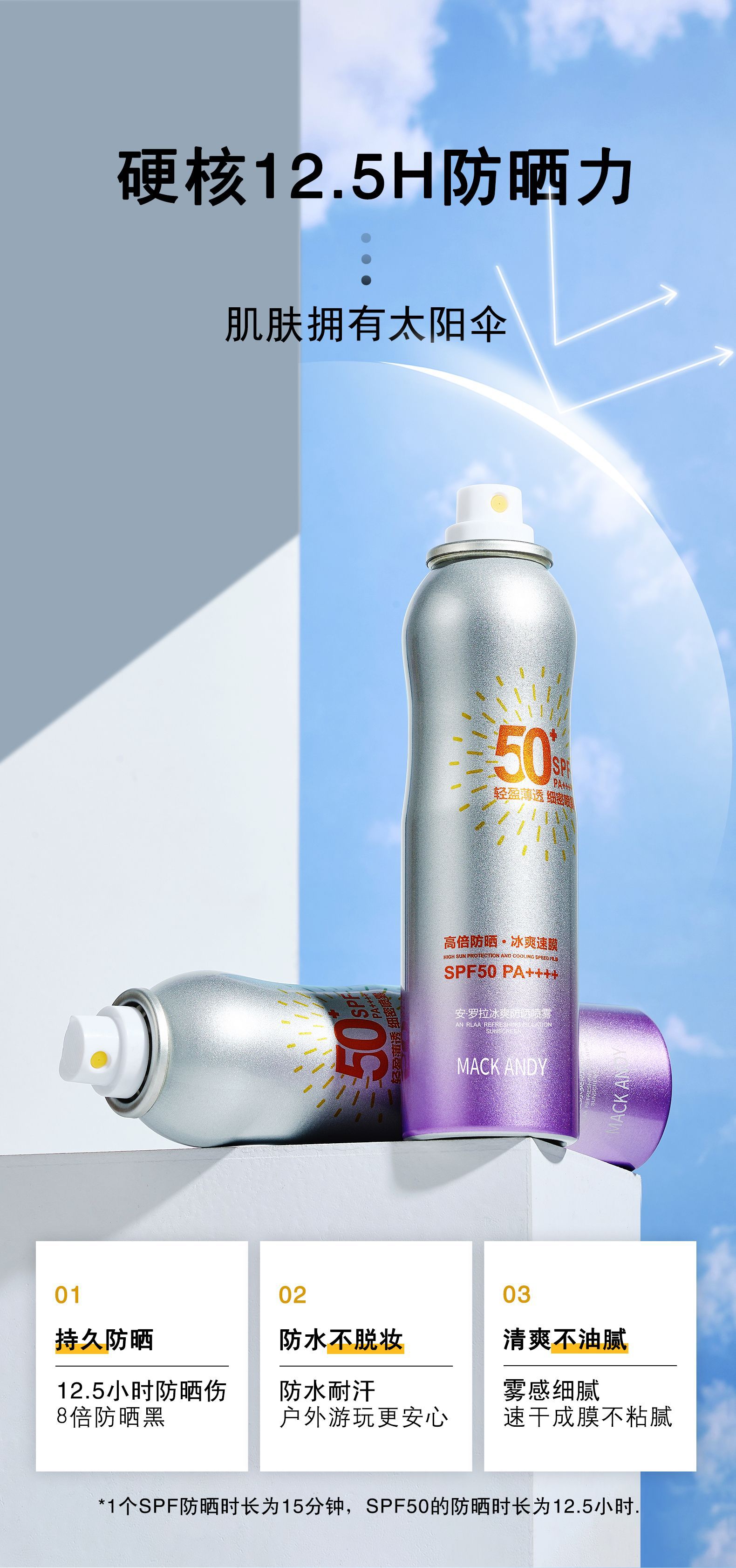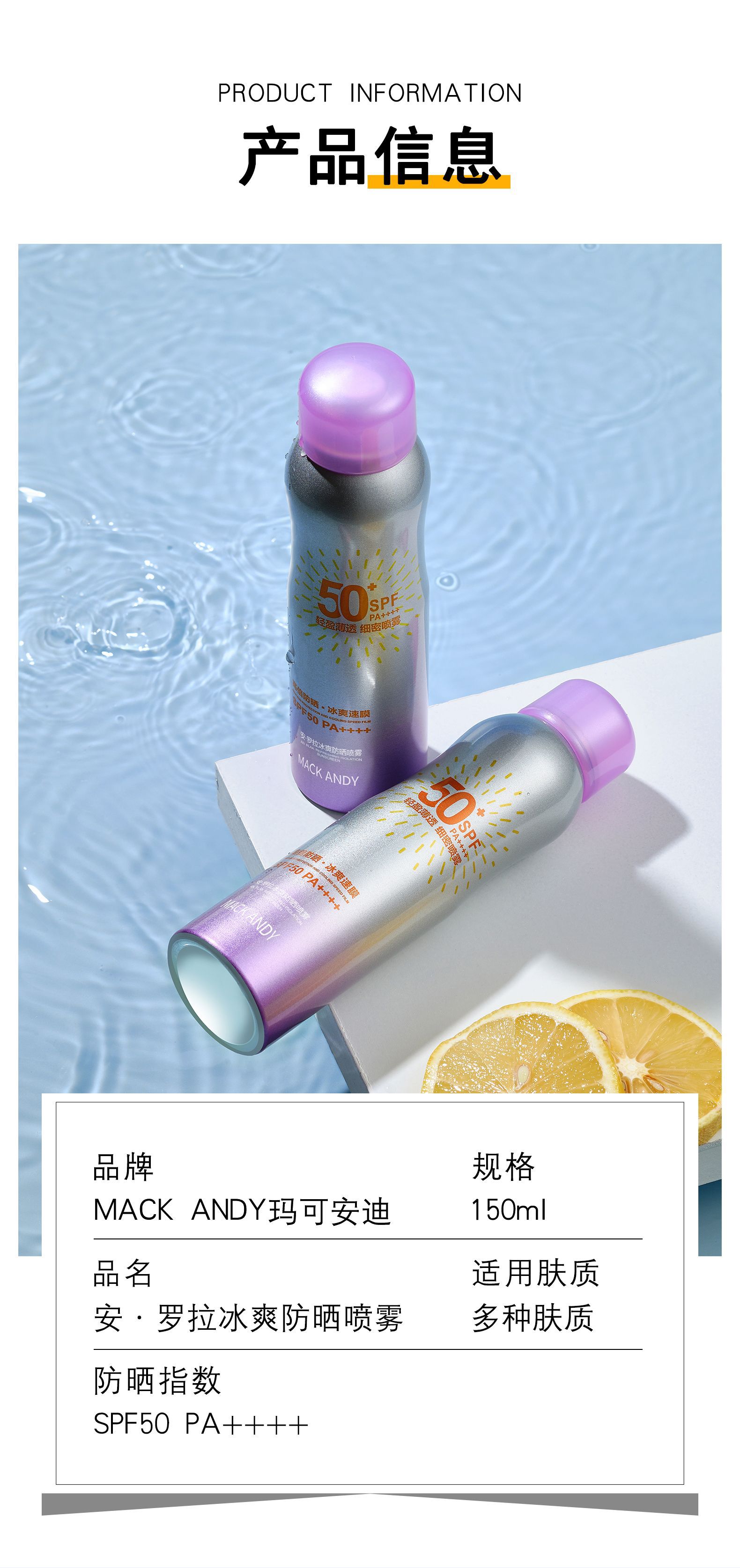 玛可安迪安罗拉冰爽防晒喷雾全身透明水晶喷雾女夏季防紫外线隔离