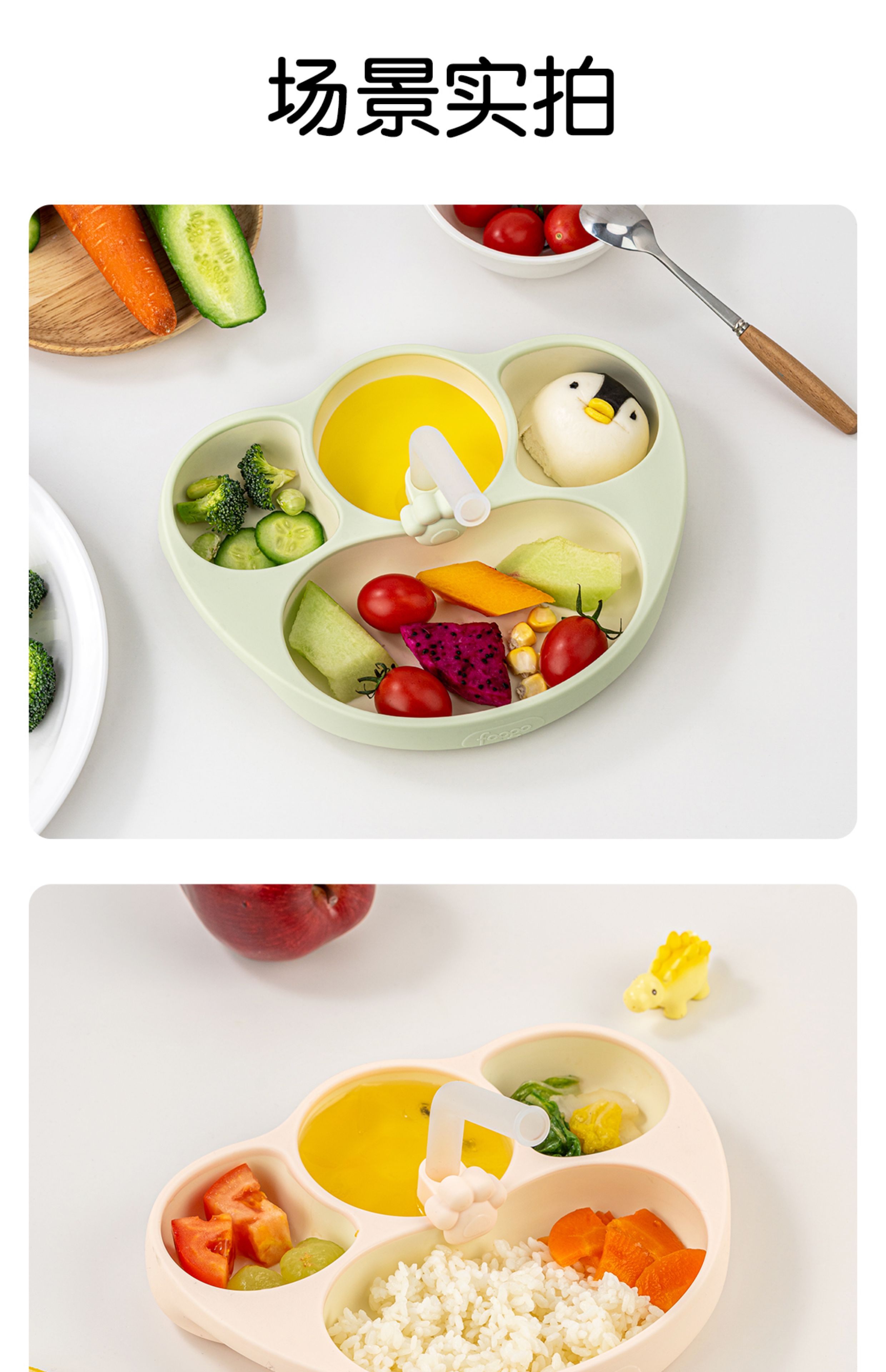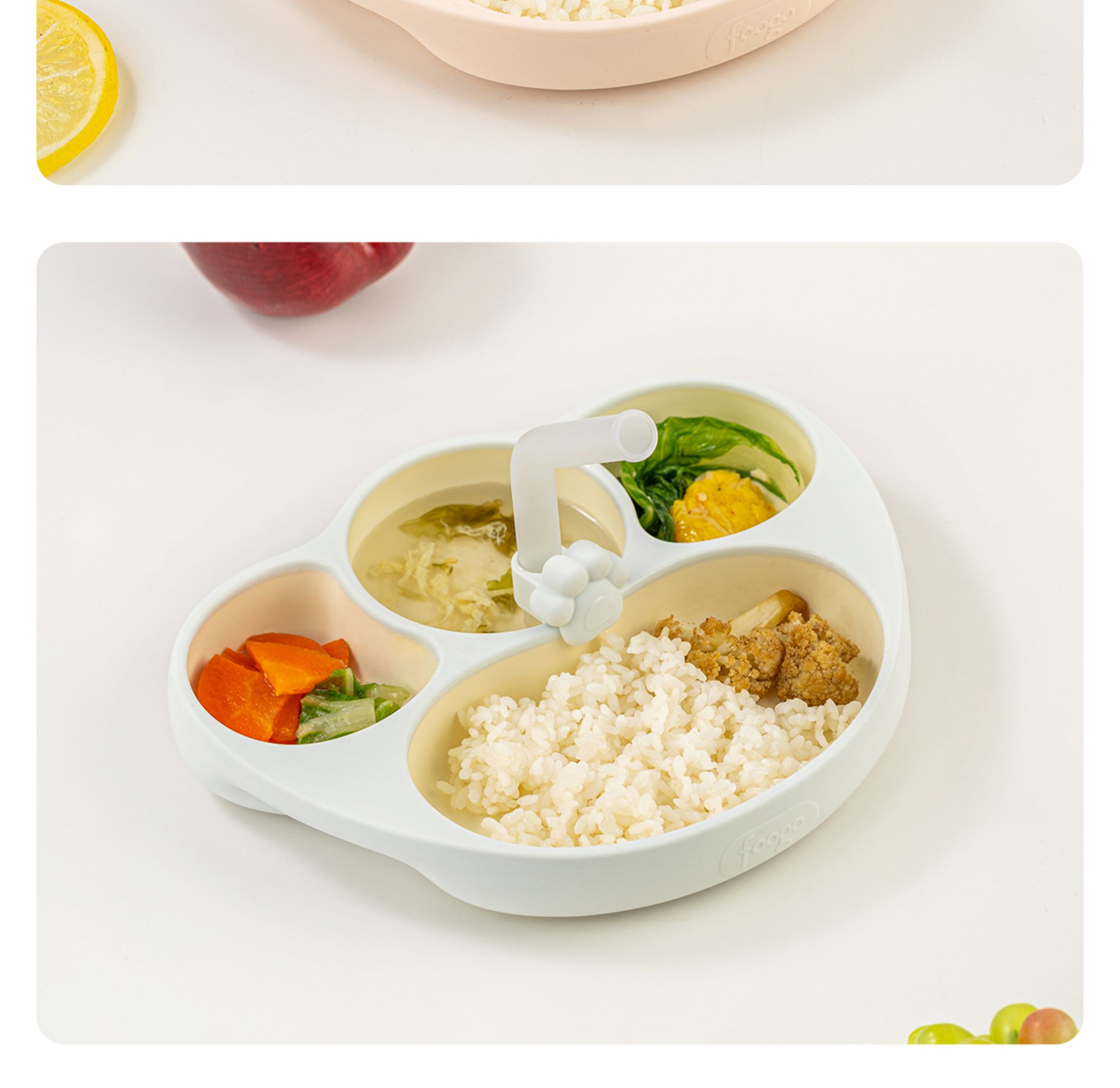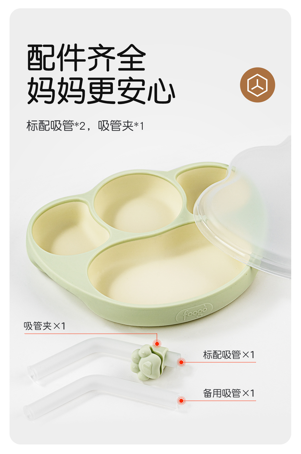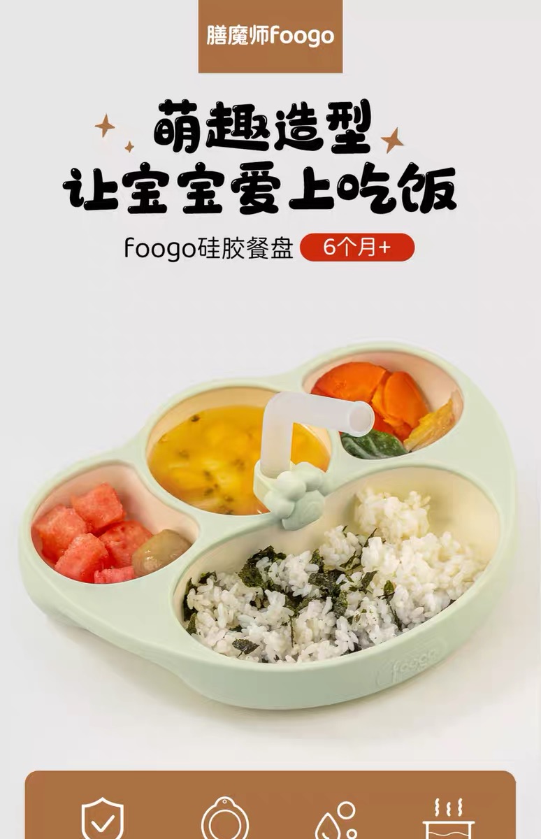 【春上新】9楼母婴生活馆 膳魔师foogo宝宝餐盘婴儿辅食碗硅胶吸盘式分格自主进食儿童餐具 吊牌价:158元 活动价:128元赠吸管架