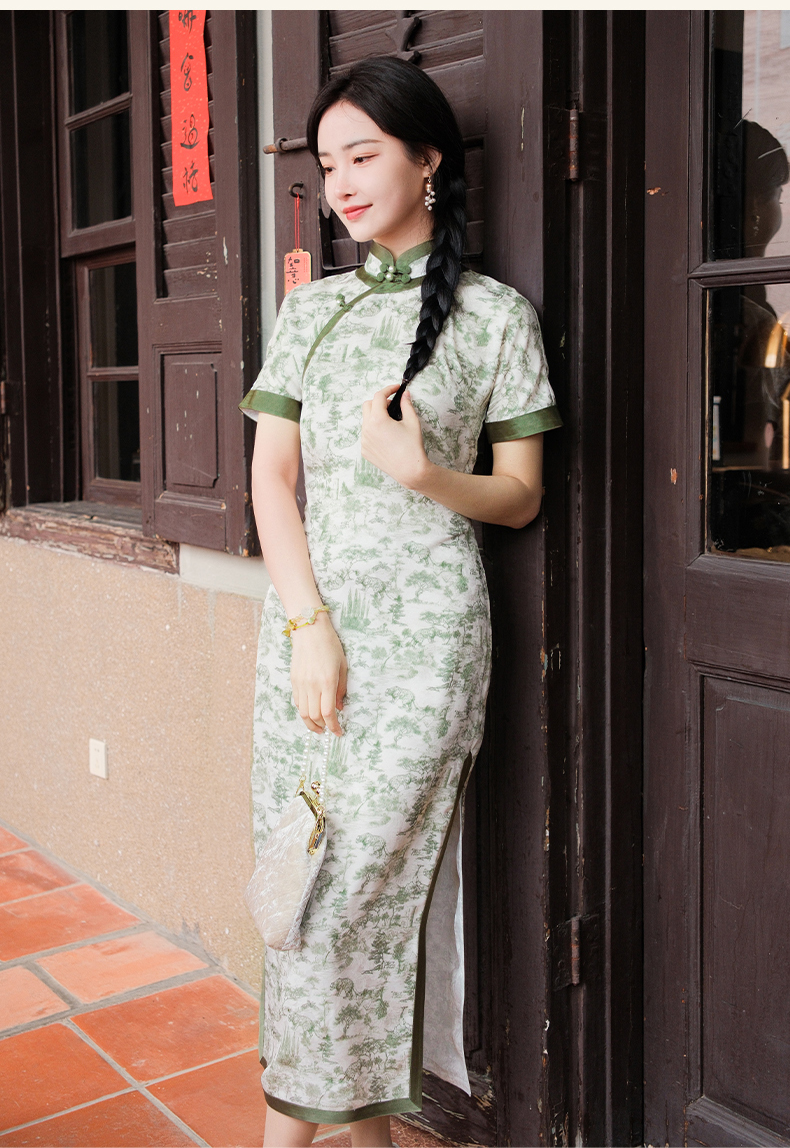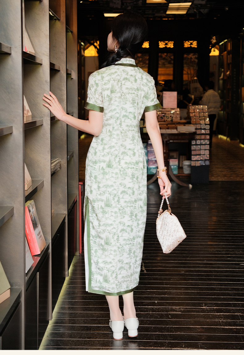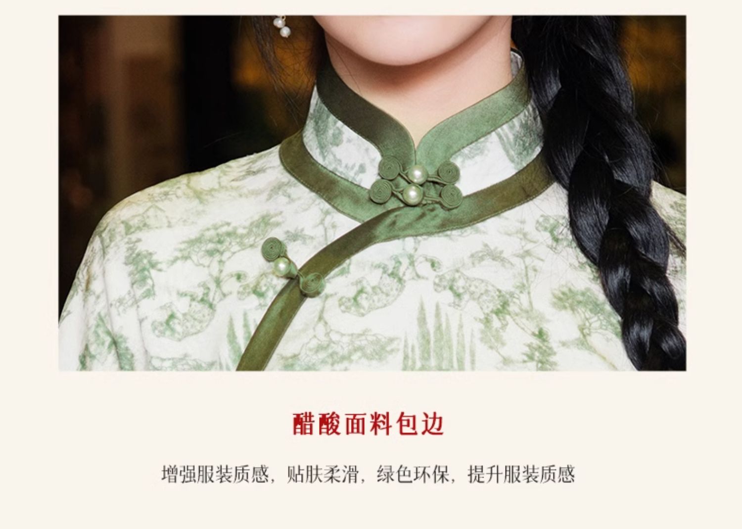 上海逸红颜清沐2025夏季新款提花手工醋酸圆襟包边新中式文艺旗袍