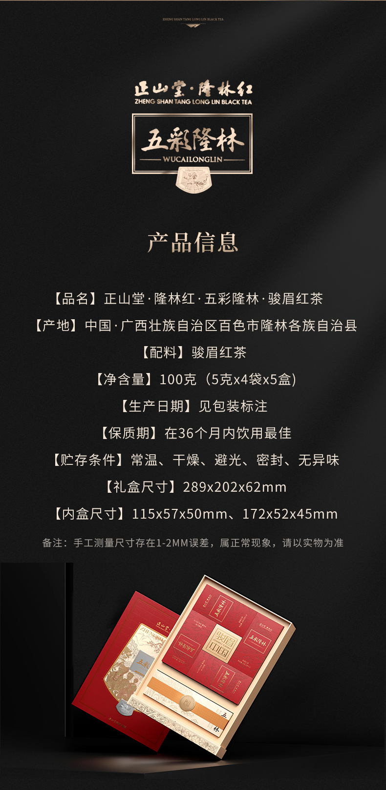 正山堂隆林红 骏眉中国秘境五彩隆林礼盒装 广西特级红茶送礼100g