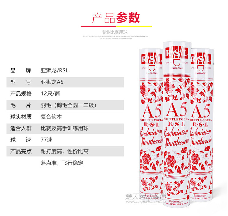 亚狮龙 RSL A5 羽毛球 亚狮龙A5 飞行稳定 耐打鹅毛球