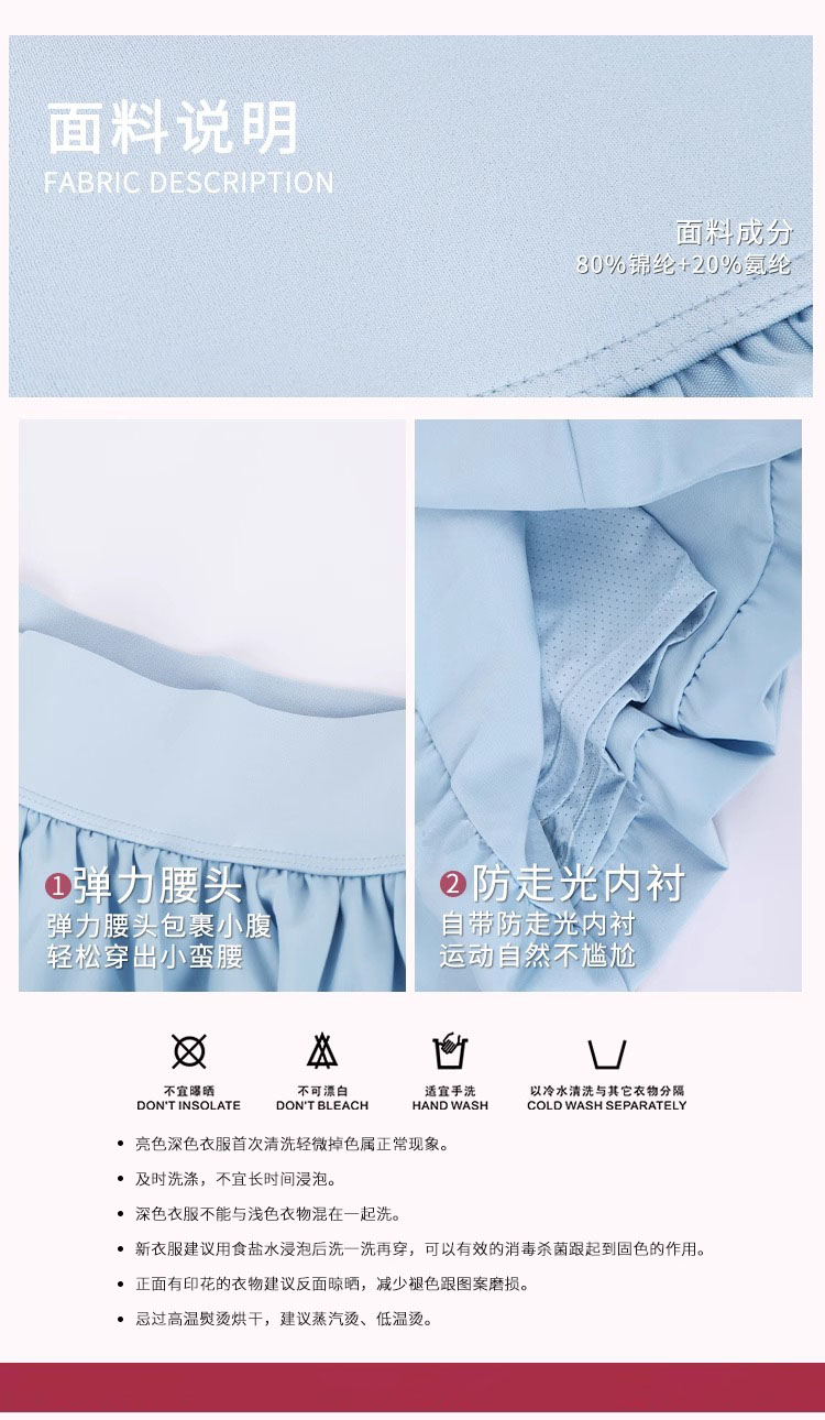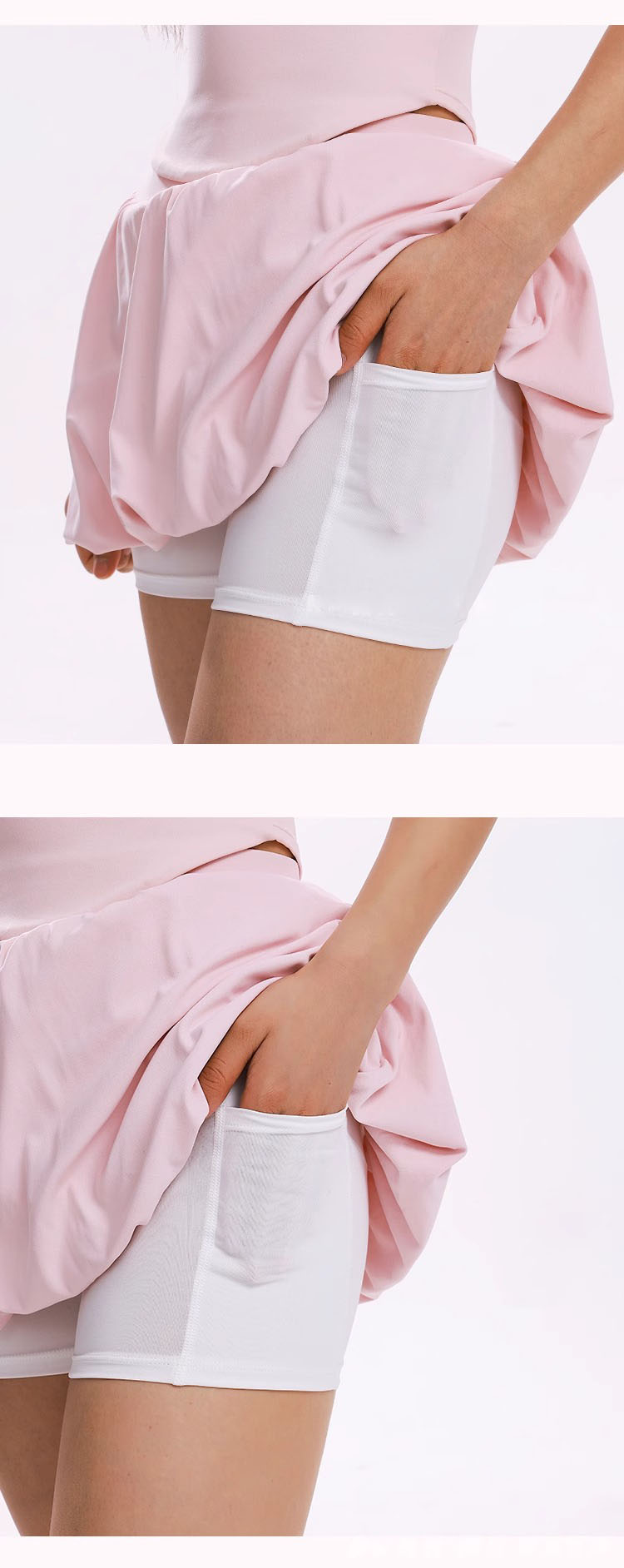 跃牌【禅语梵心】裸感少女网球短裙高腰防走光打底透气口袋蓬蓬跑步运动短裙DQ5515