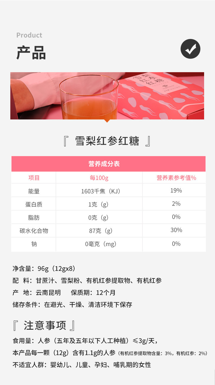 云耕物作雪梨红参红糖两盒装8*12g/盒