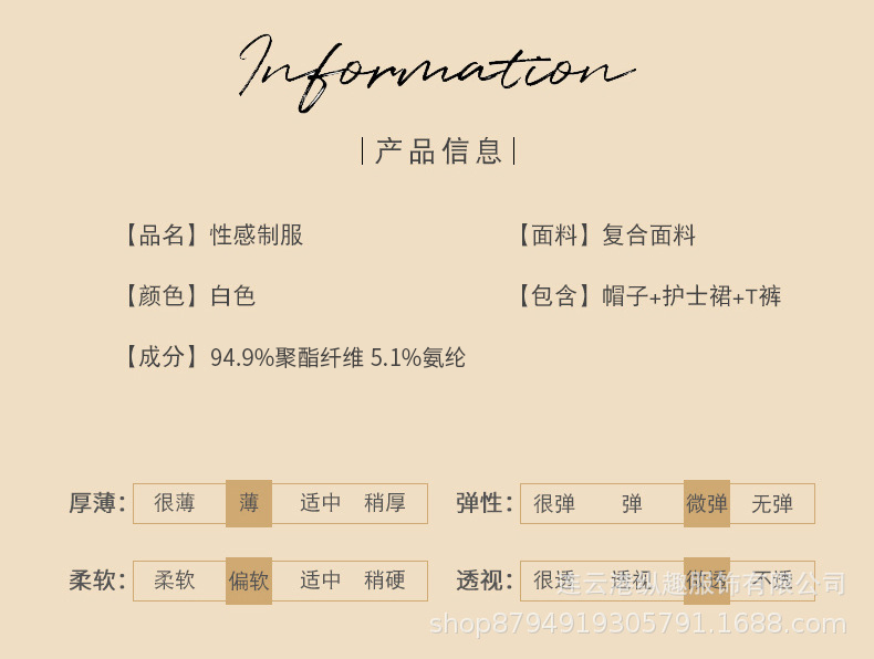 【性感睡裙】护士装制服睡衣 帽子+护士裙+T裤 纯欲诱惑性感甜美情趣内衣睡衣6054