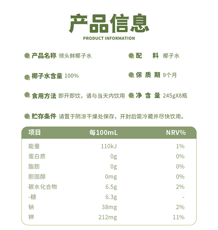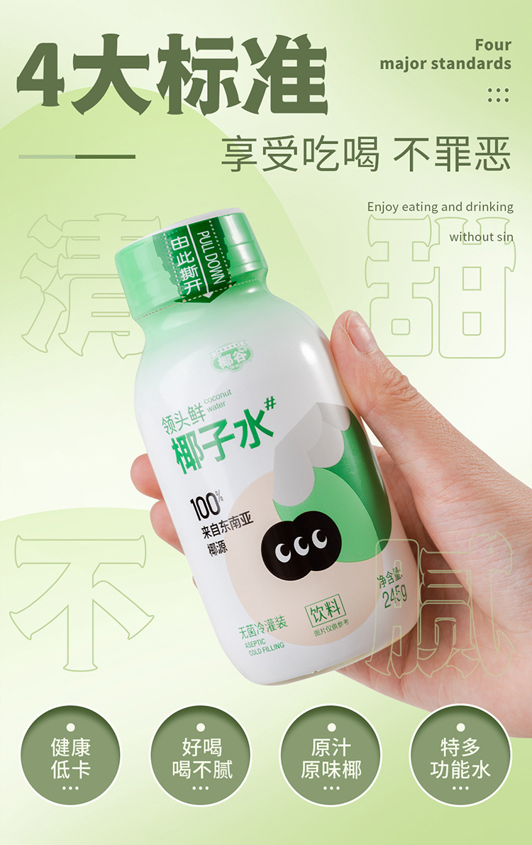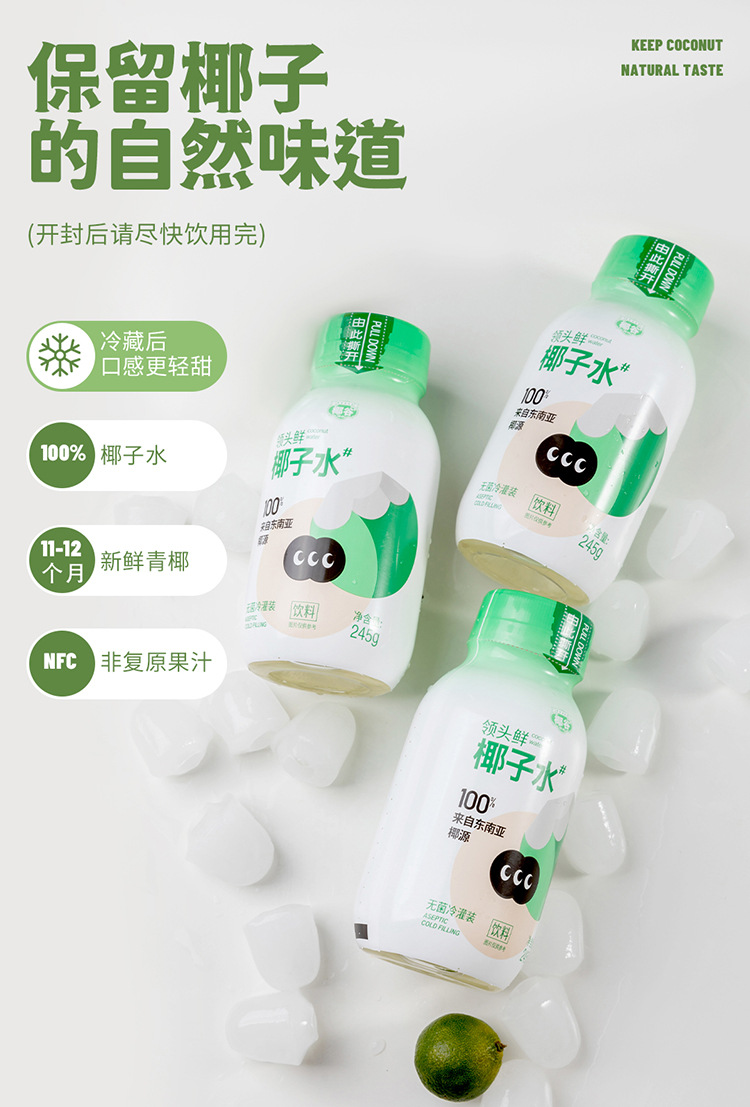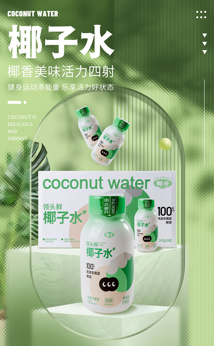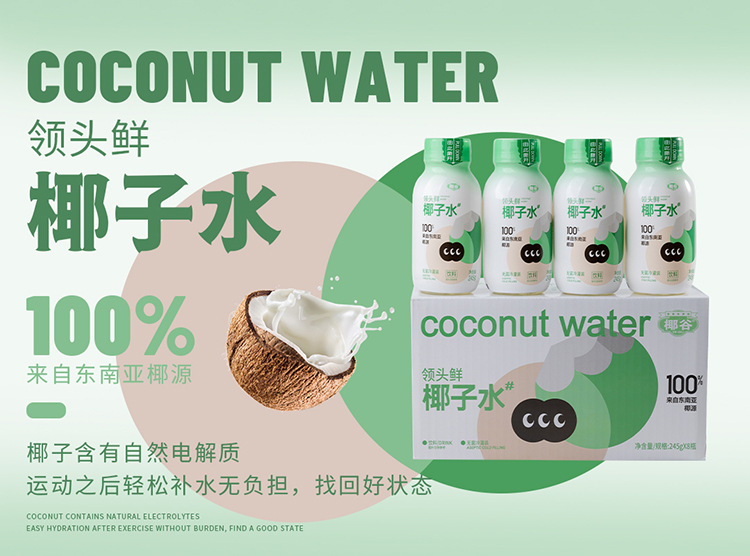 椰谷椰子水鲜榨100%纯椰汁245g*8瓶整箱椰青果汁电解质饮料