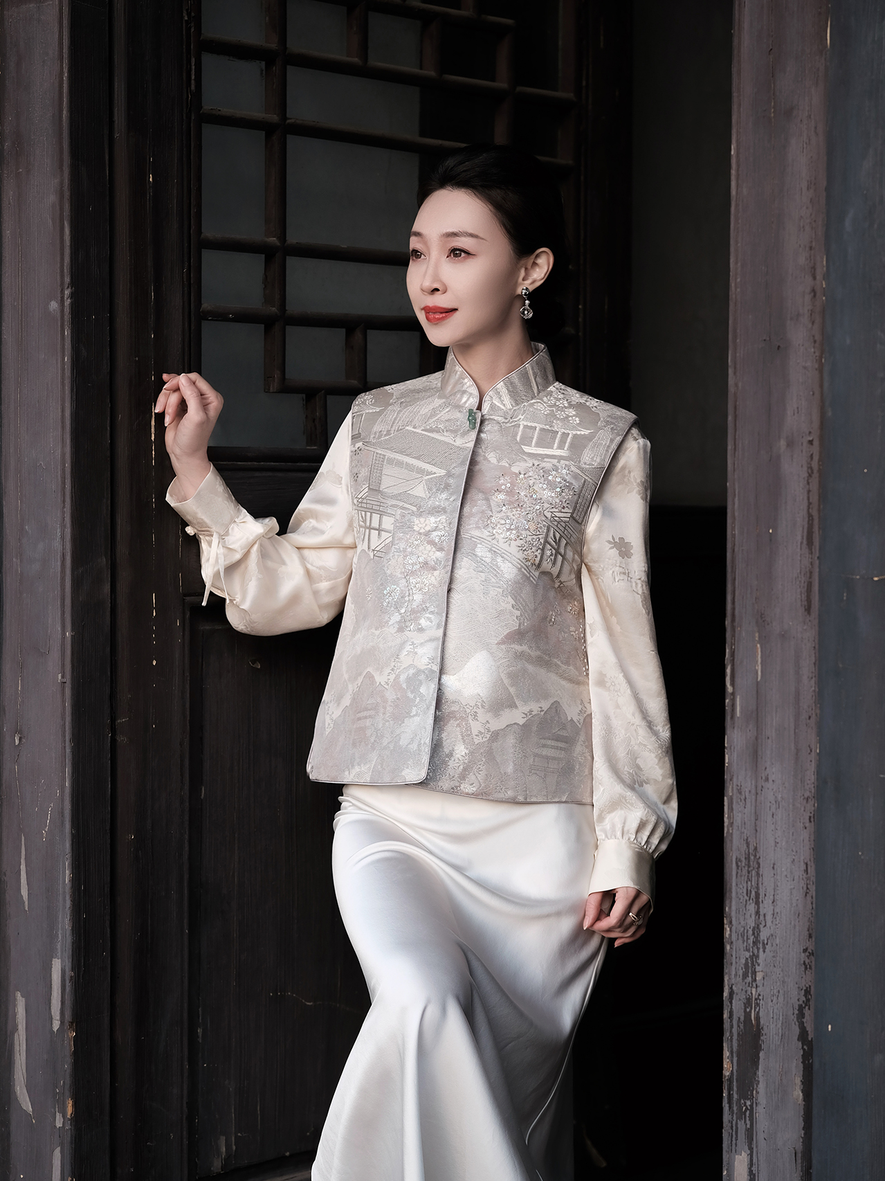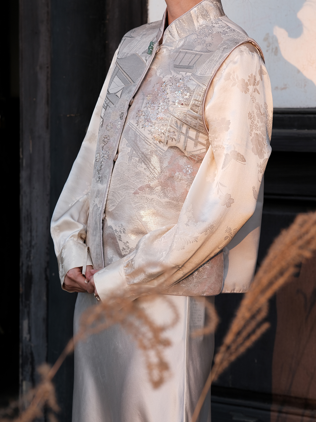 盛唐婧 |真丝宋锦钱币纹对襟马甲