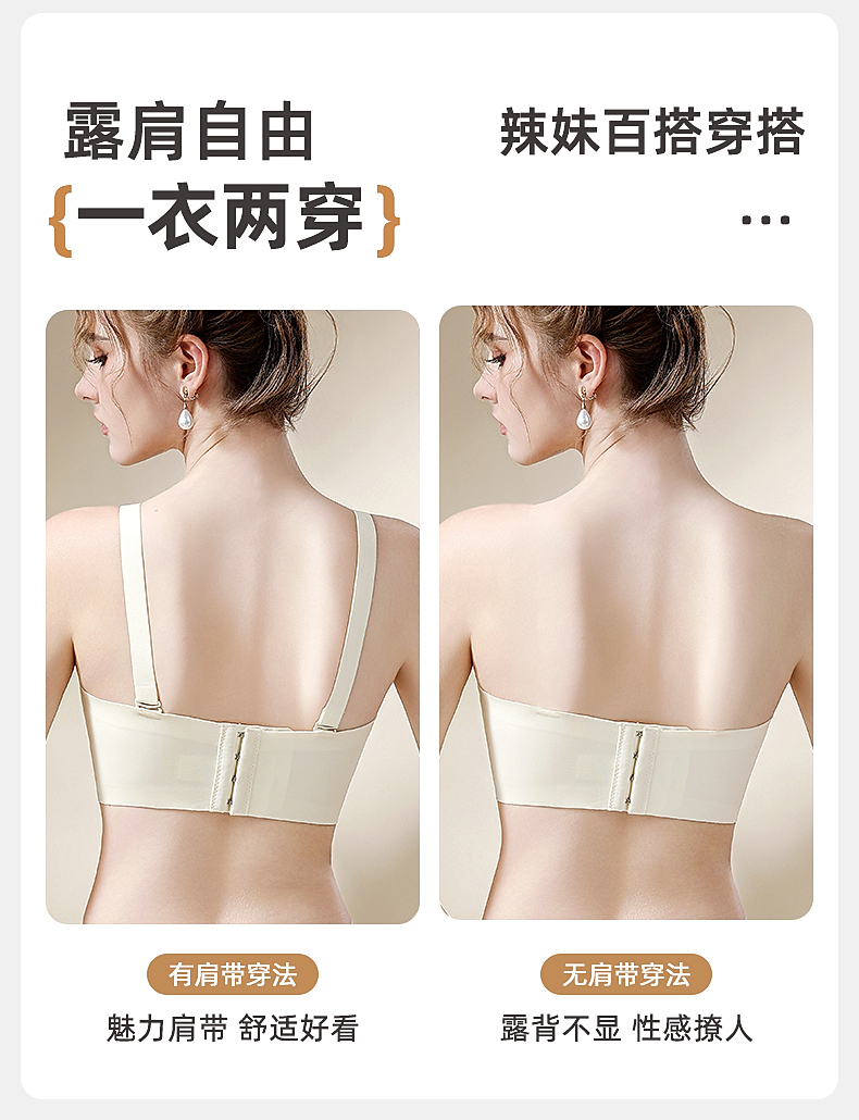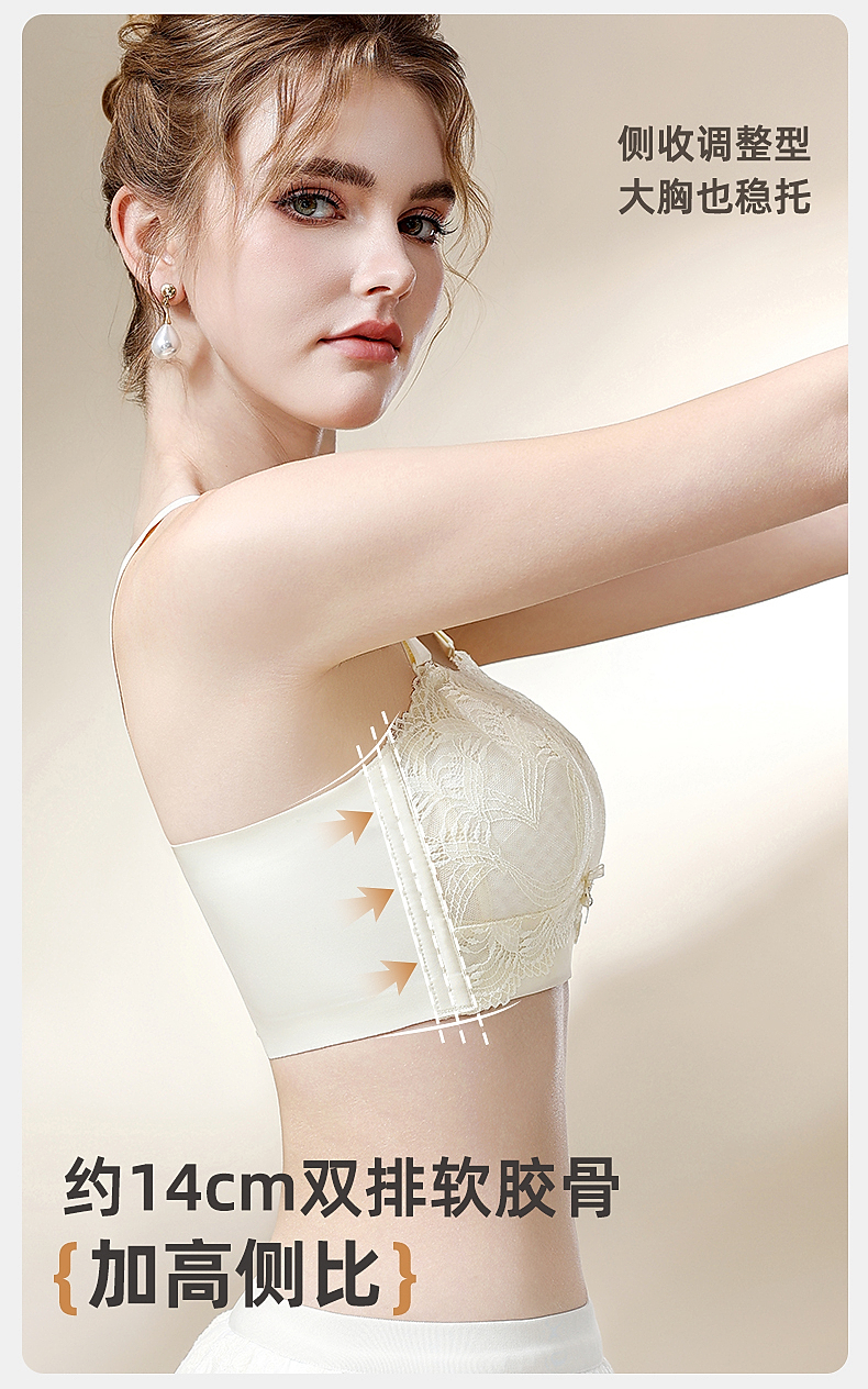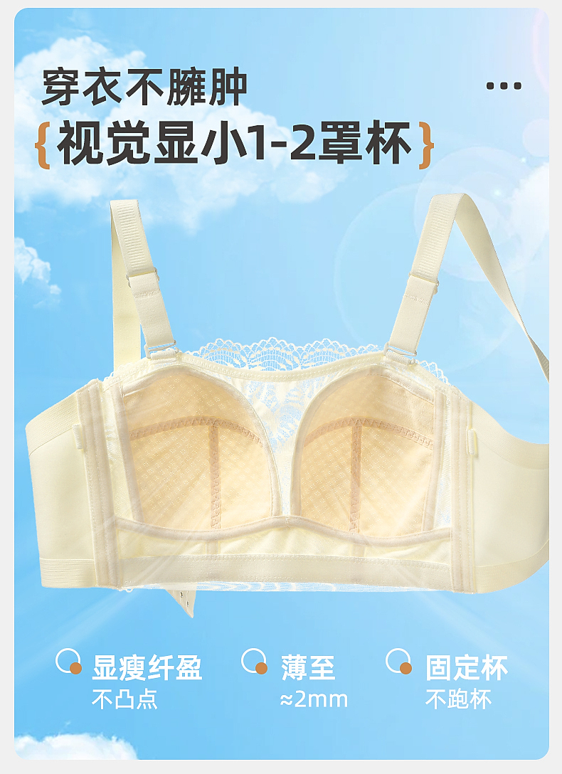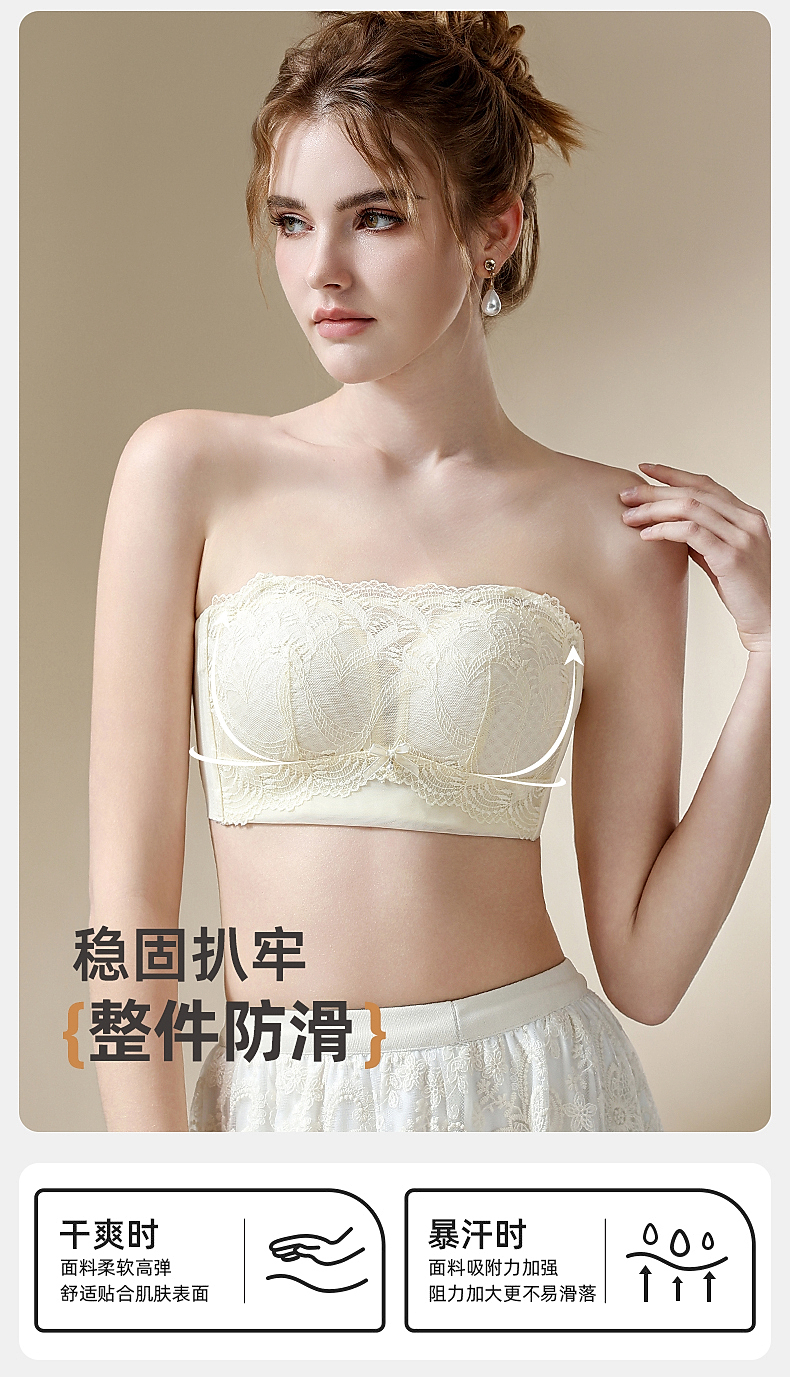 雅黛俪女士内衣大胸显小显瘦轻薄透气蕾丝可拆卸肩带抹胸式文胸春夏新款胸罩