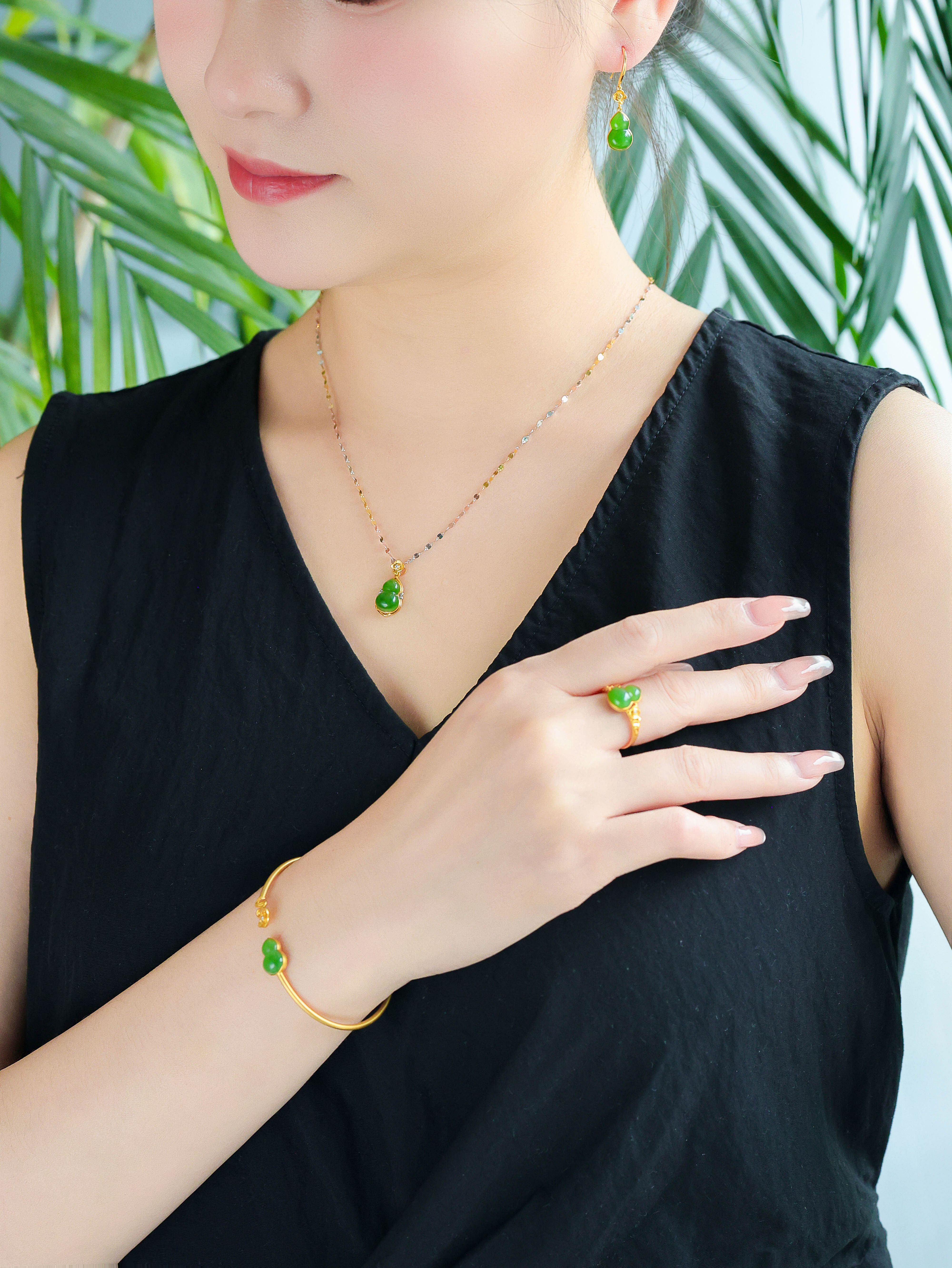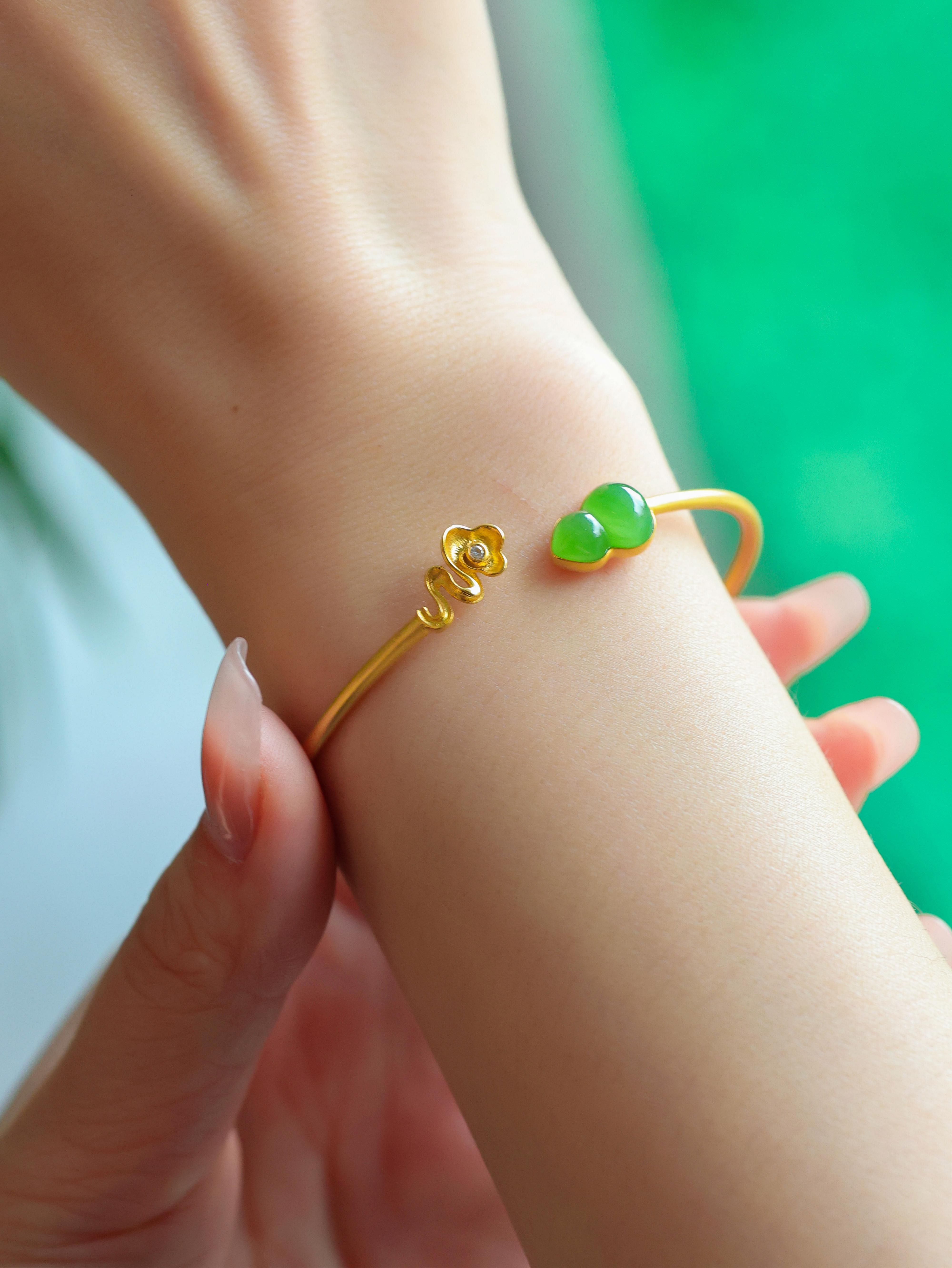 流云百福/18K金碧玉手镯 尺寸约:8*11mm 圈口大小:
