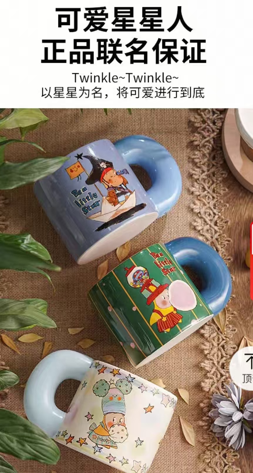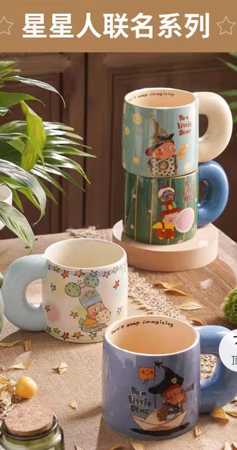 星星人联名网红水杯子大容量情侣陶瓷马克杯生日礼物咖啡杯伴手礼bj