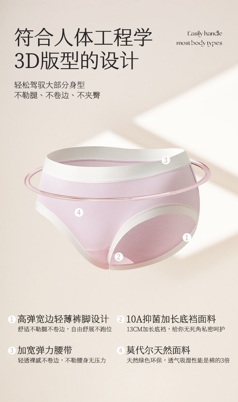 【49.9元5条】轻存10A抑菌莫代尔亲肤女士内裤