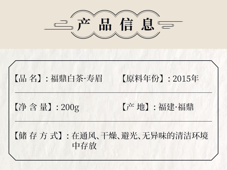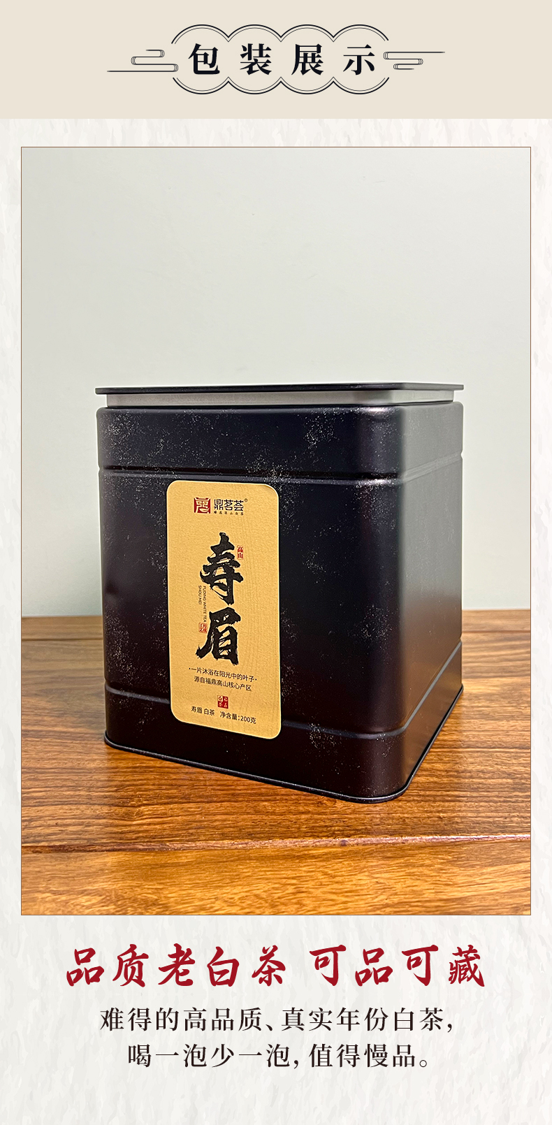 鼎茗荟丨十年陈 日晒寿眉 福鼎白茶 2015年原料 200g 罐装配手提袋