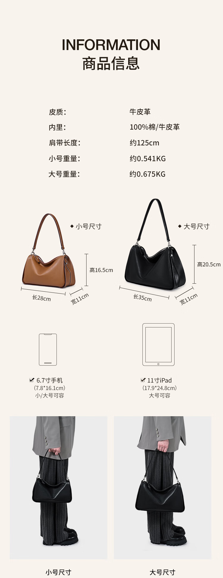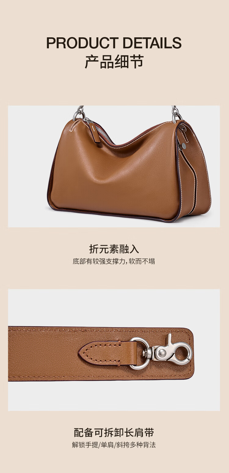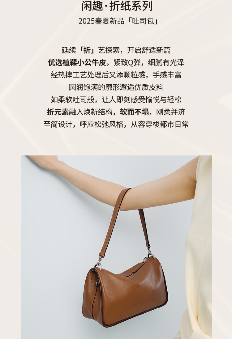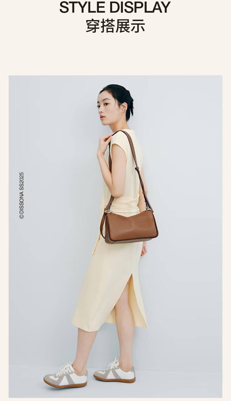 【2F】DISSONA【董洁同款】迪桑娜女包25年吐司包软包腋下包手提单肩包斜挎包 小号-棕色